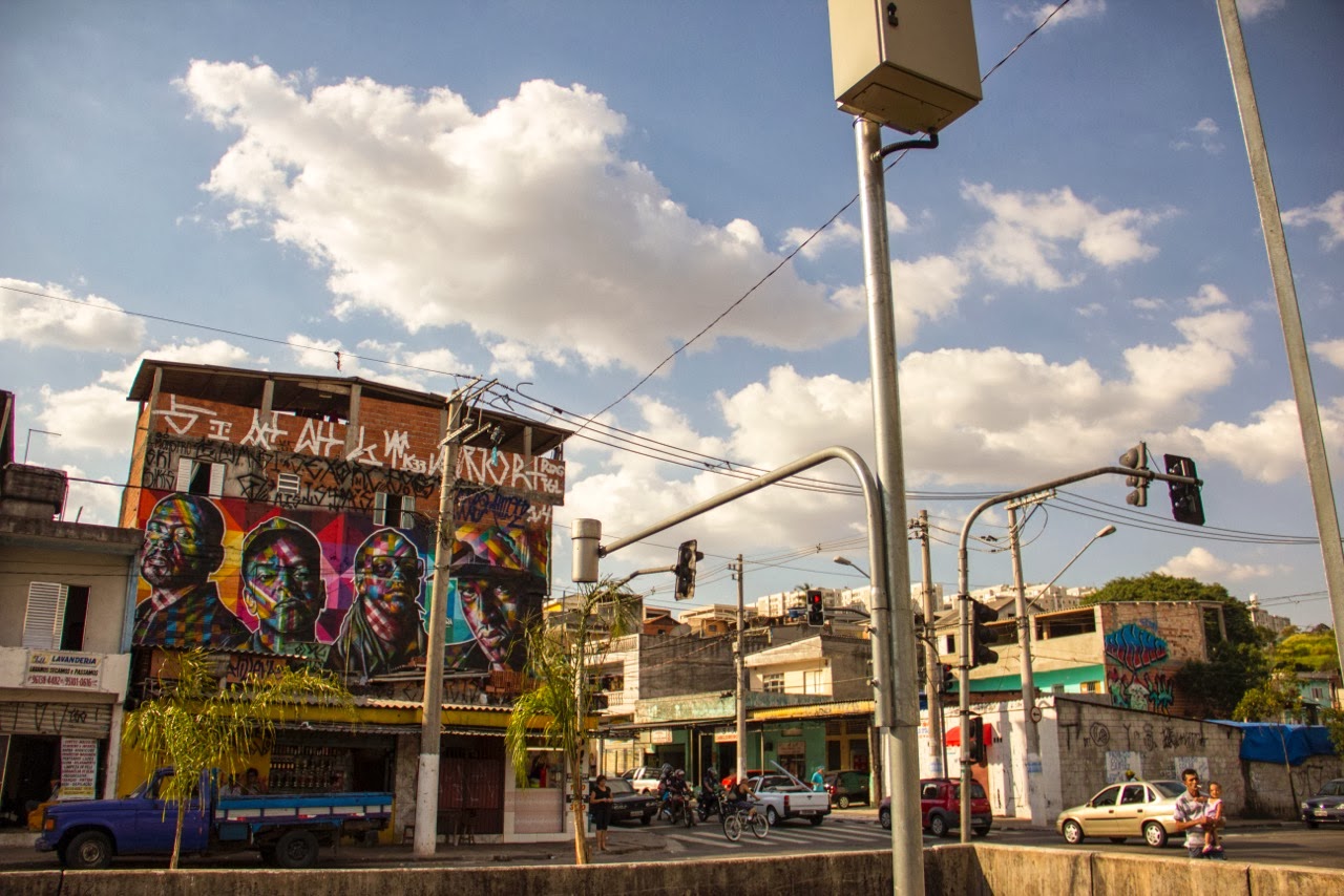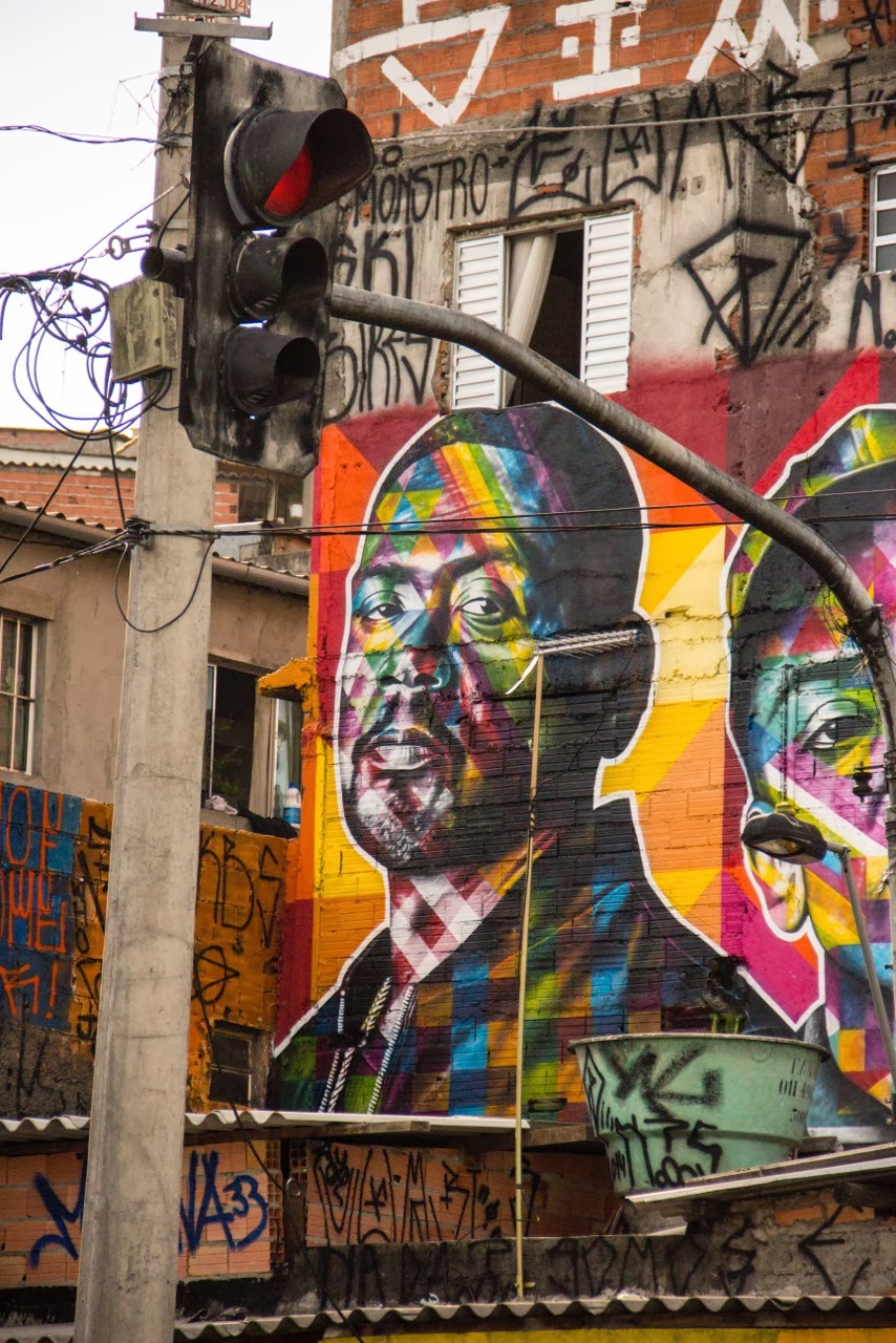 The popular Brazilian street artist painted these images of one of the most important rap groups of Brazil, called Racionais MC’ with his trademark kaleidoscope of colours. The piece is located inside the original neighbourhood of the Racionais’ members.