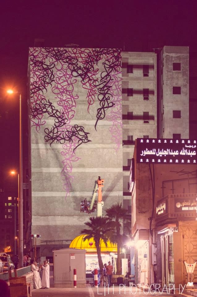 In town for the Jeddah Art Week, eL Seed painted this beautiful piece featuring his signature Arabic calligraphic technique.