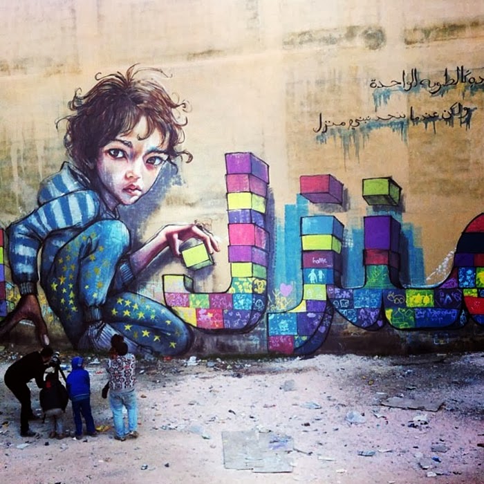 Herakut are currently in Jordan where they just finished working on these new pieces in Za’atari, the world’s second-largest refugee camp.