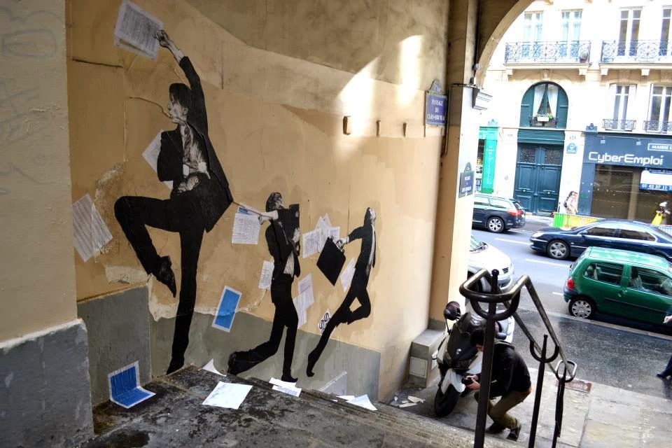 This piece is a yet another example of Levalet’s paste-up people interacting with the environments in interesting ways.