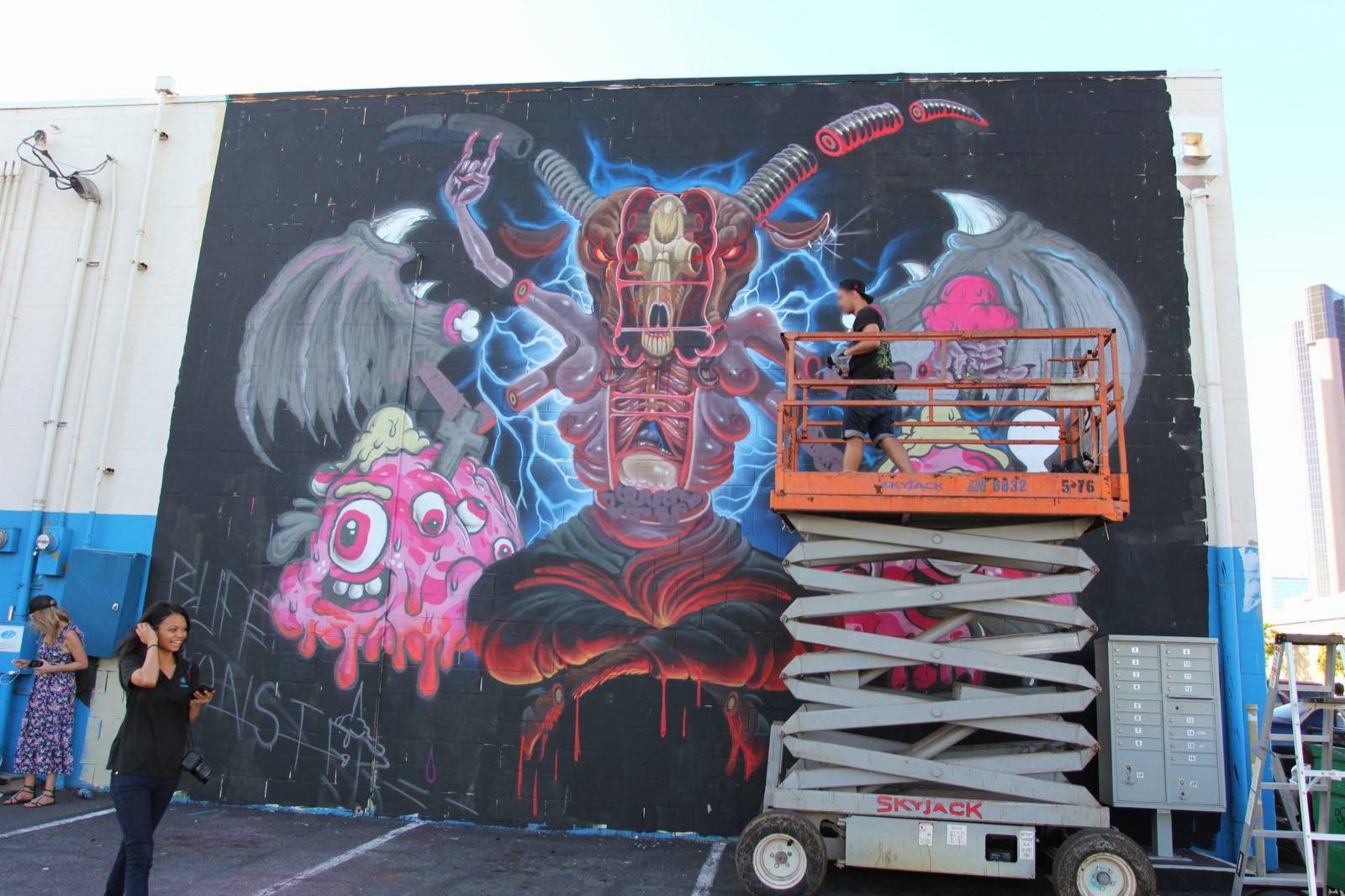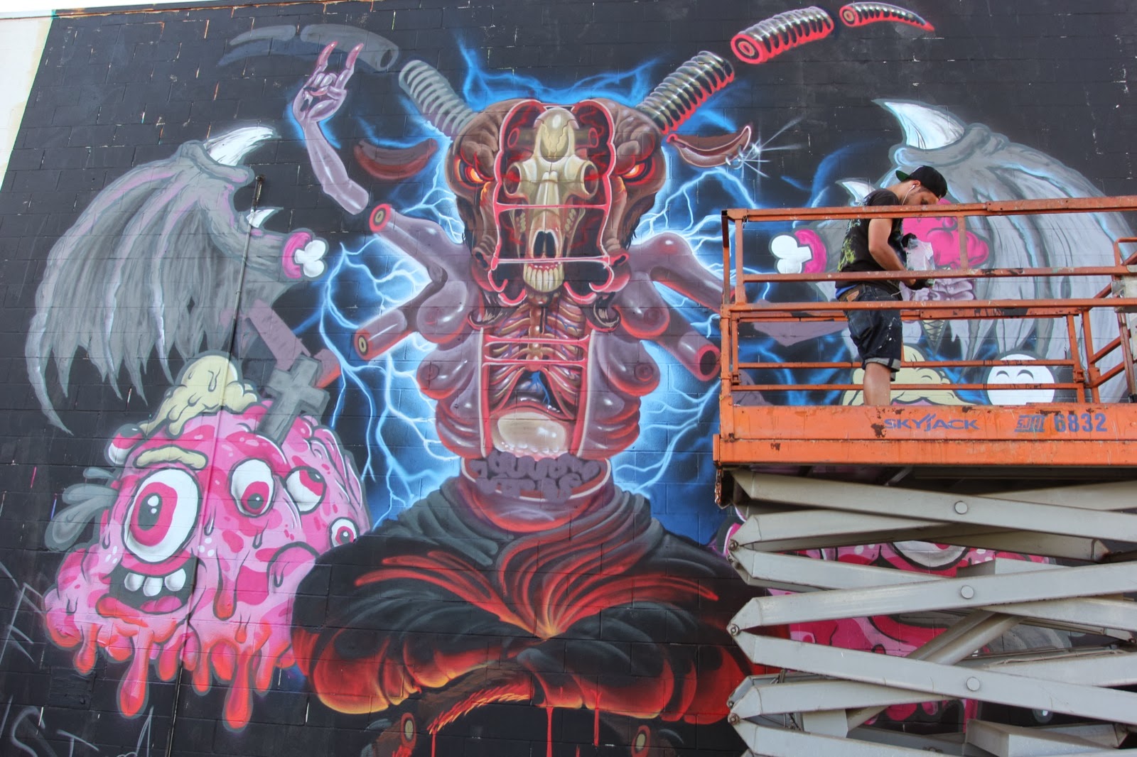 Vienna-based Nychos is back in Hawaii for POW! WOW! 2014 and this time he teamed up with the legendary Buff Monster to work on this new mural.