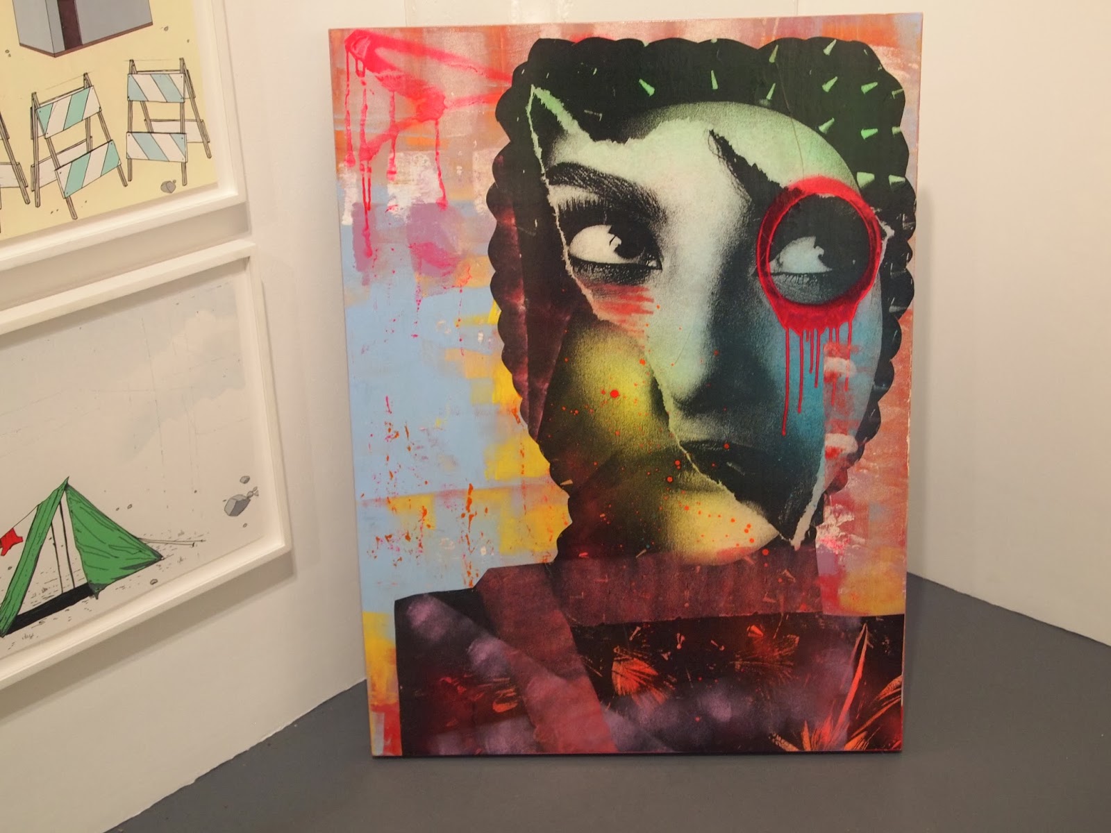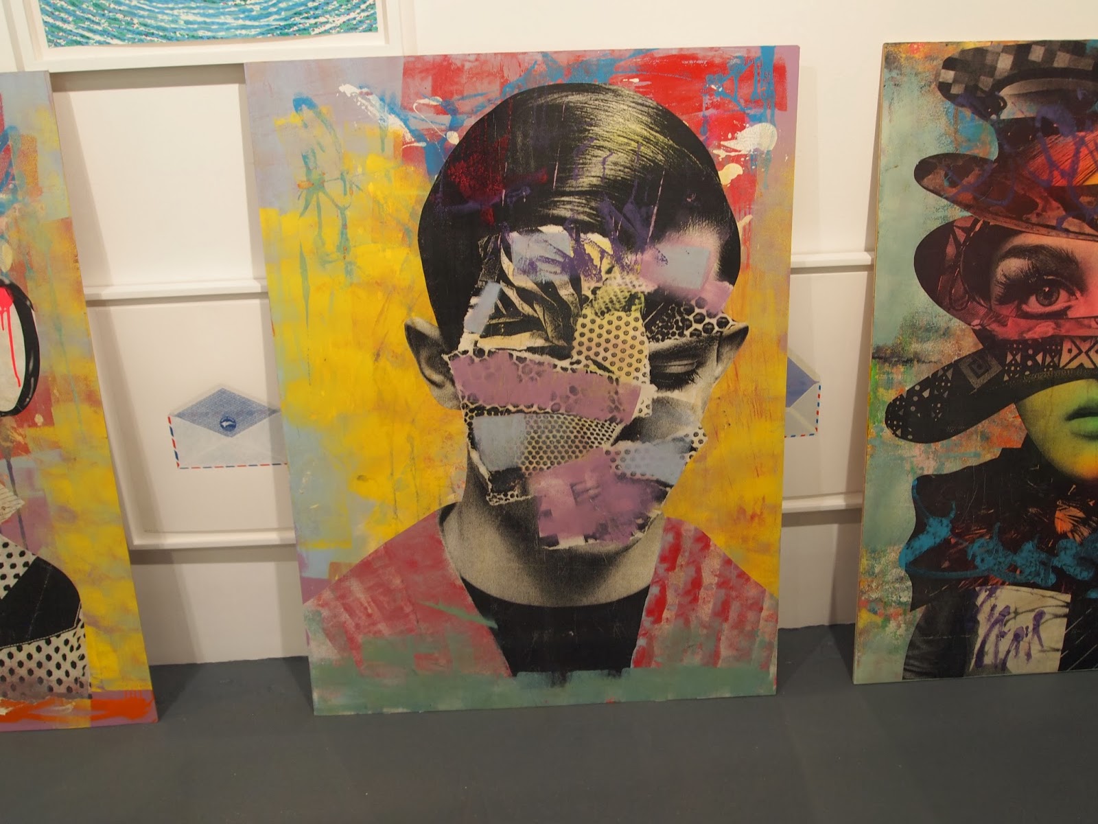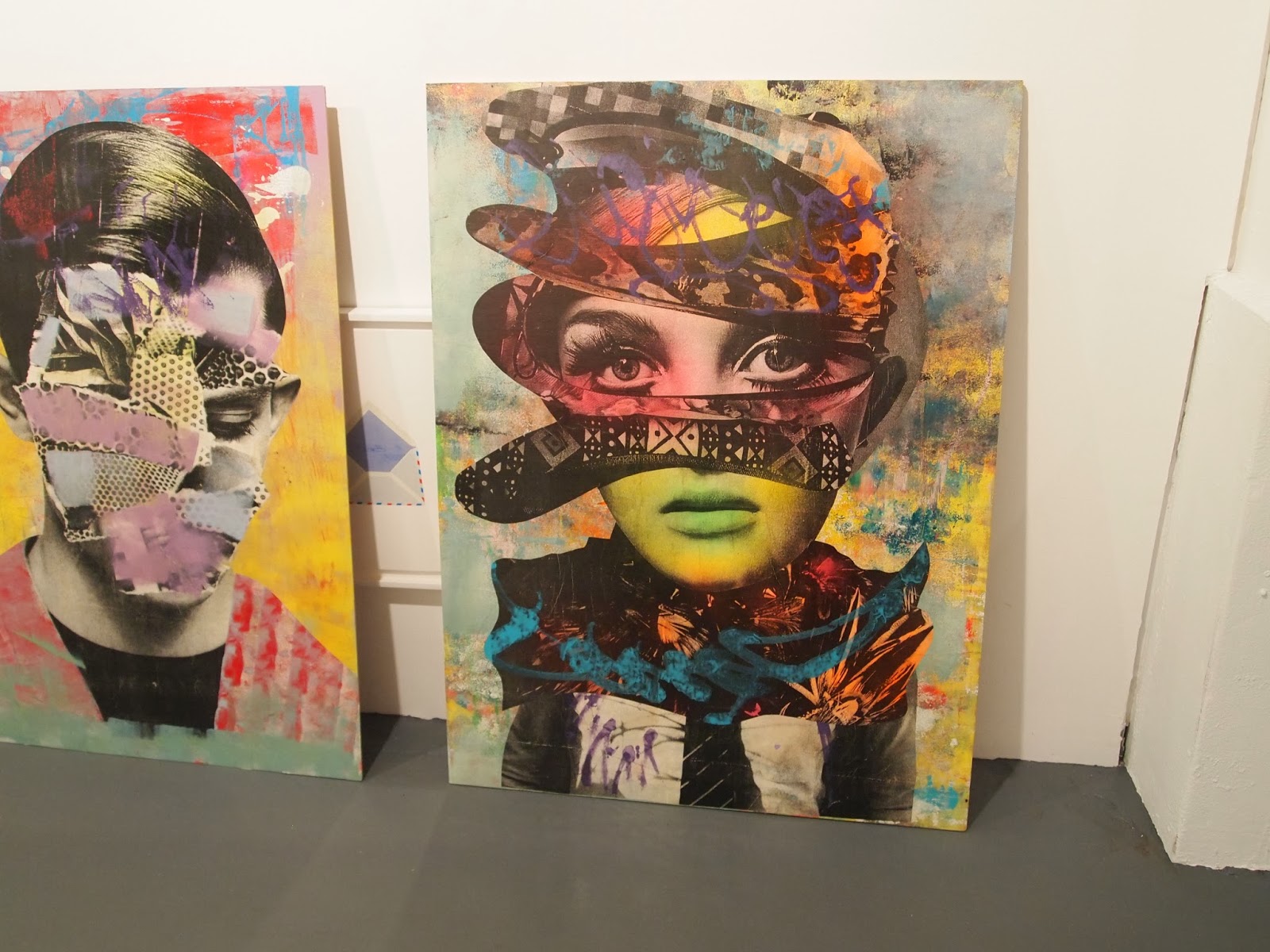 The original paintings reflect Dain’s trademark style of combining images of classical beauties with modern street collage techniques. Each piece is one of a kind and depending on size will most likely be priced between $7,000 and $10,000.