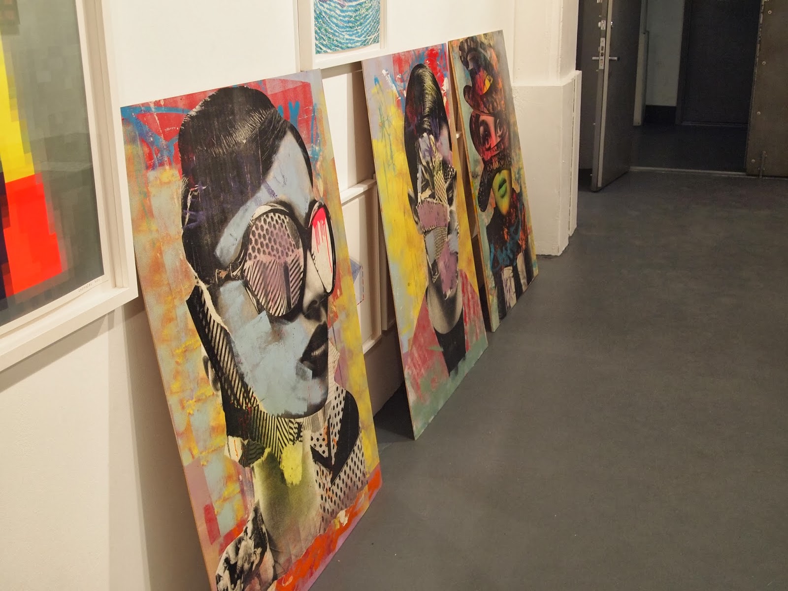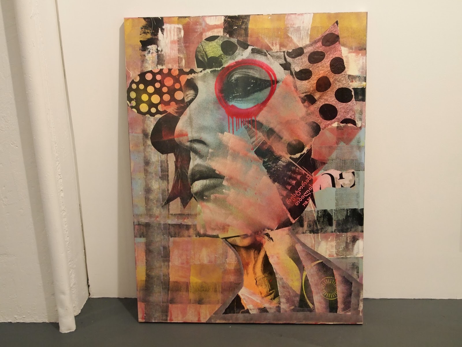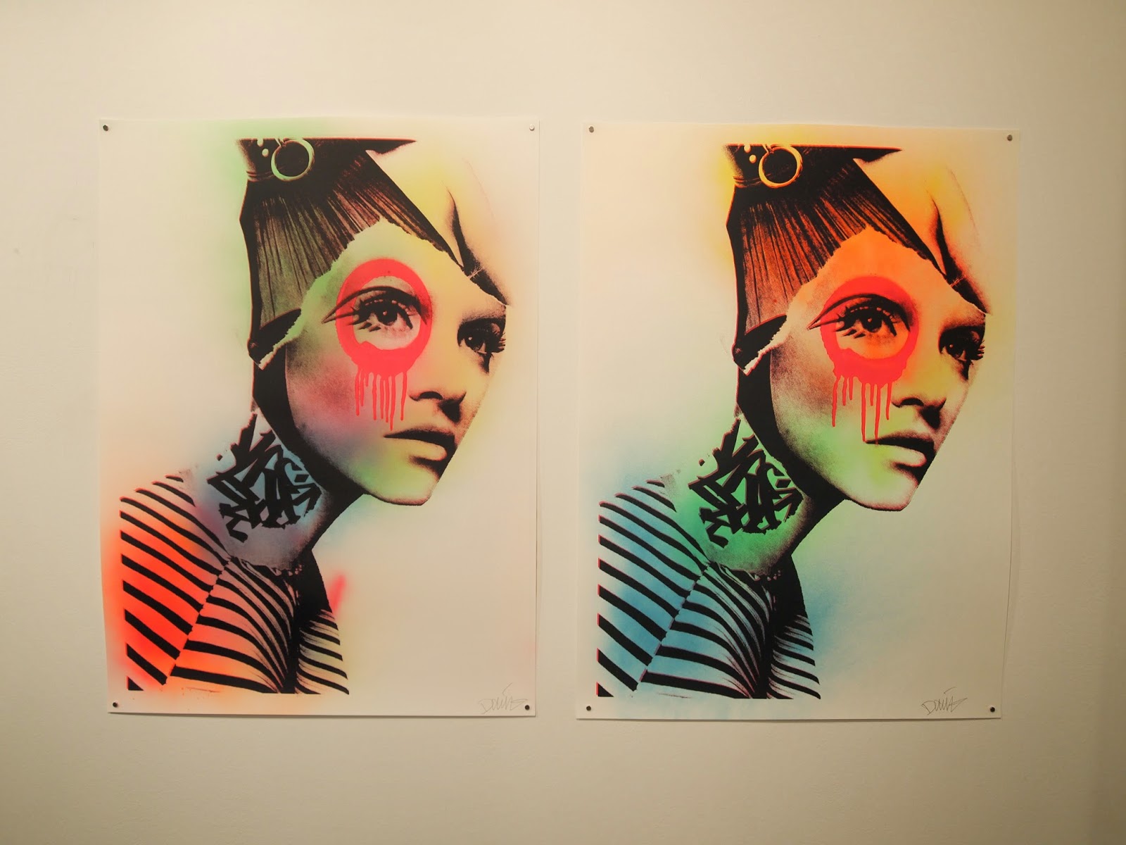 The original paintings reflect Dain’s trademark style of combining images of classical beauties with modern street collage techniques. Each piece is one of a kind and depending on size will most likely be priced between $7,000 and $10,000.