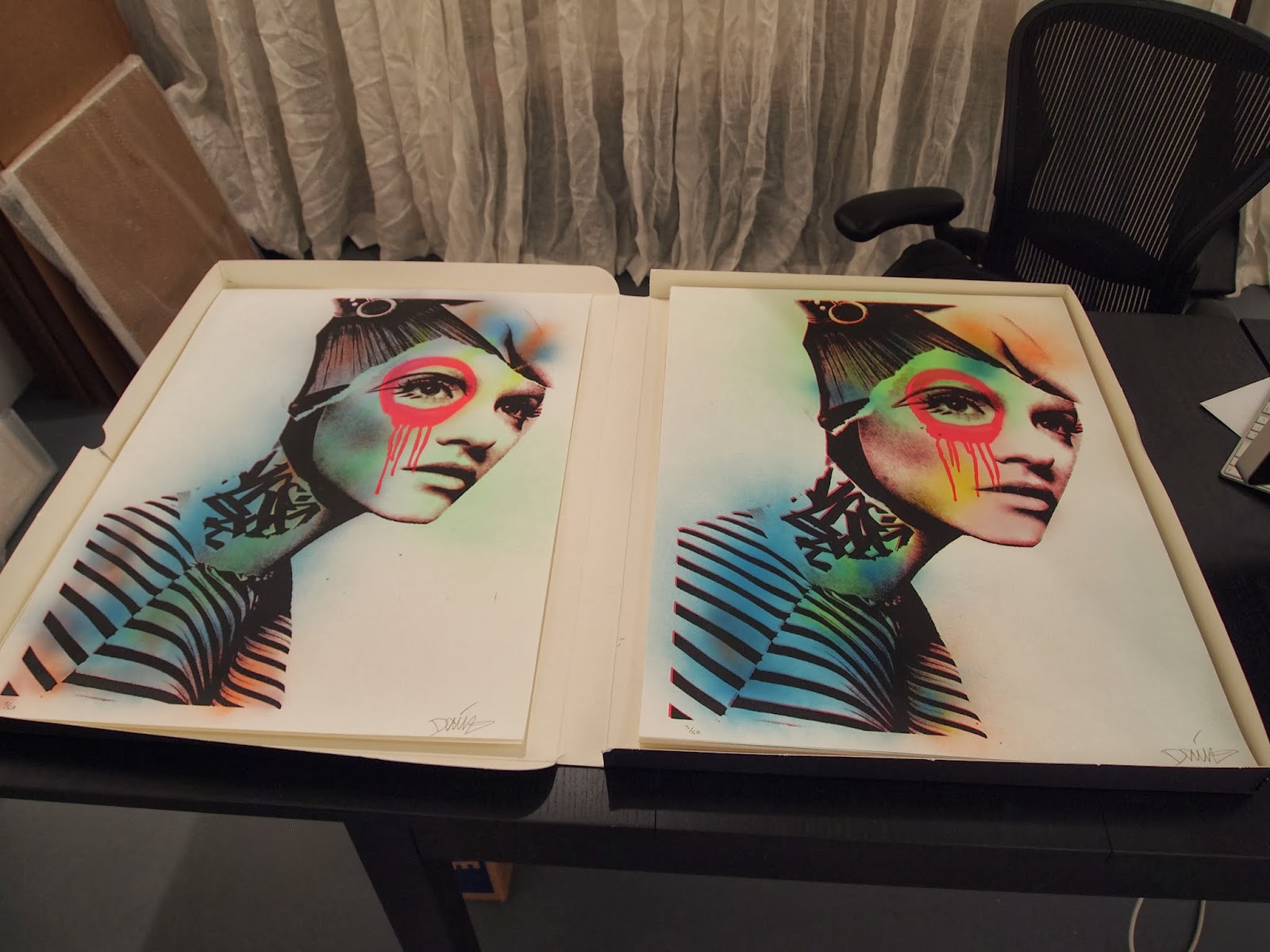 The first print entitled “Streets of Soho” is already available for purchase on Folioleaf’s website at a cost of $300. Each print is a two color screen print which was then hand finished with spray paint by Dain, making each print unique (there is a significant change in the color palette and finishing techniques throughout the edition…).
