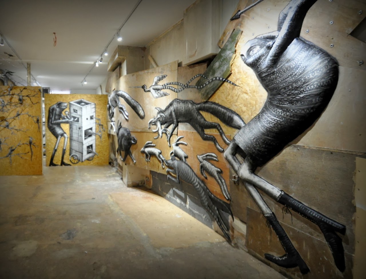 Known for his huge monochromatic murals, Phlegm transformed the gallery with an incredible amount of work on display.
