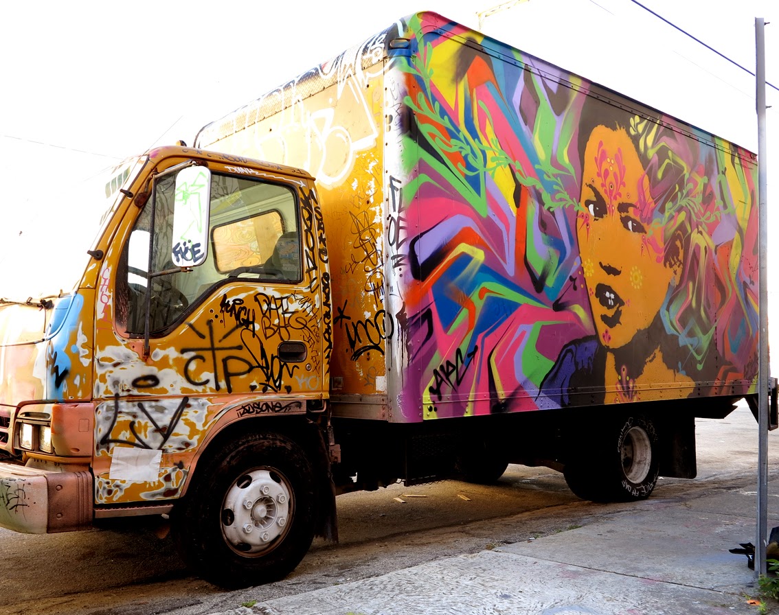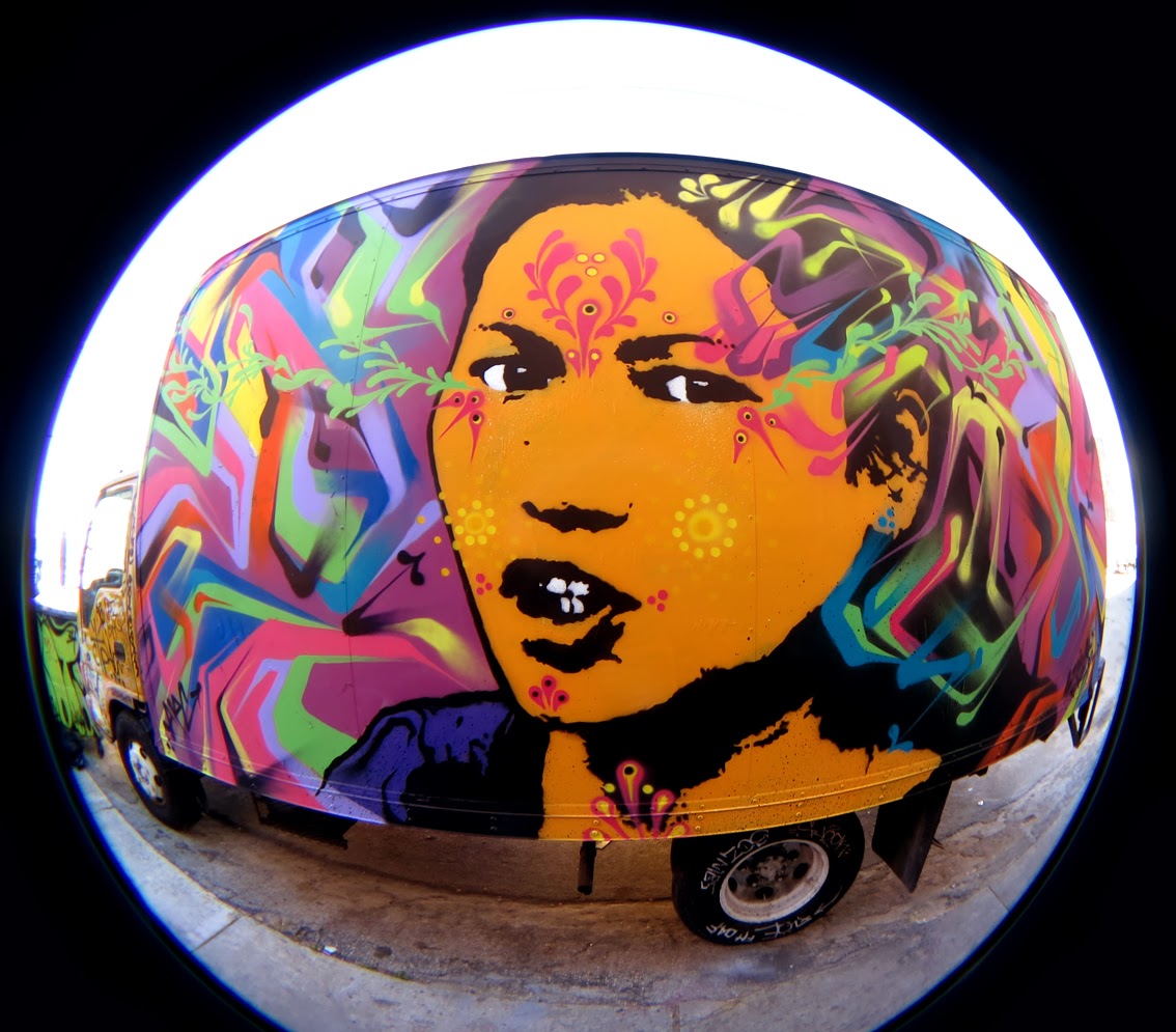 The Colombian street artist teamed up with Hoxxoh to work on the above mural before painting a solo piece on a truck.
