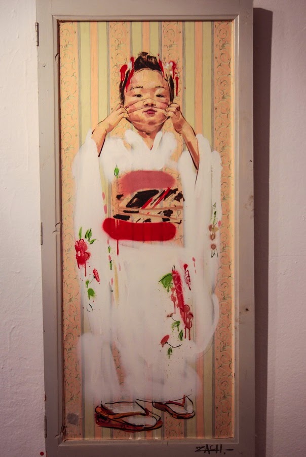 This show is his first European solo show, and is a big finale of his recent art residence he did in Barcelona. The works and installations he created for this event are continuing of his street works he’s been creating around Malaysia, as well as his recent solo show there (covered). Painting on found objects, his work are perfect balance between his fine painting and spray painting. Along with exhibiting new works created on found wood, old suitcases, boxes, barrels, windows, etc, he created an effective install that combines objects and painting. The show will be on view until 3rd of May.