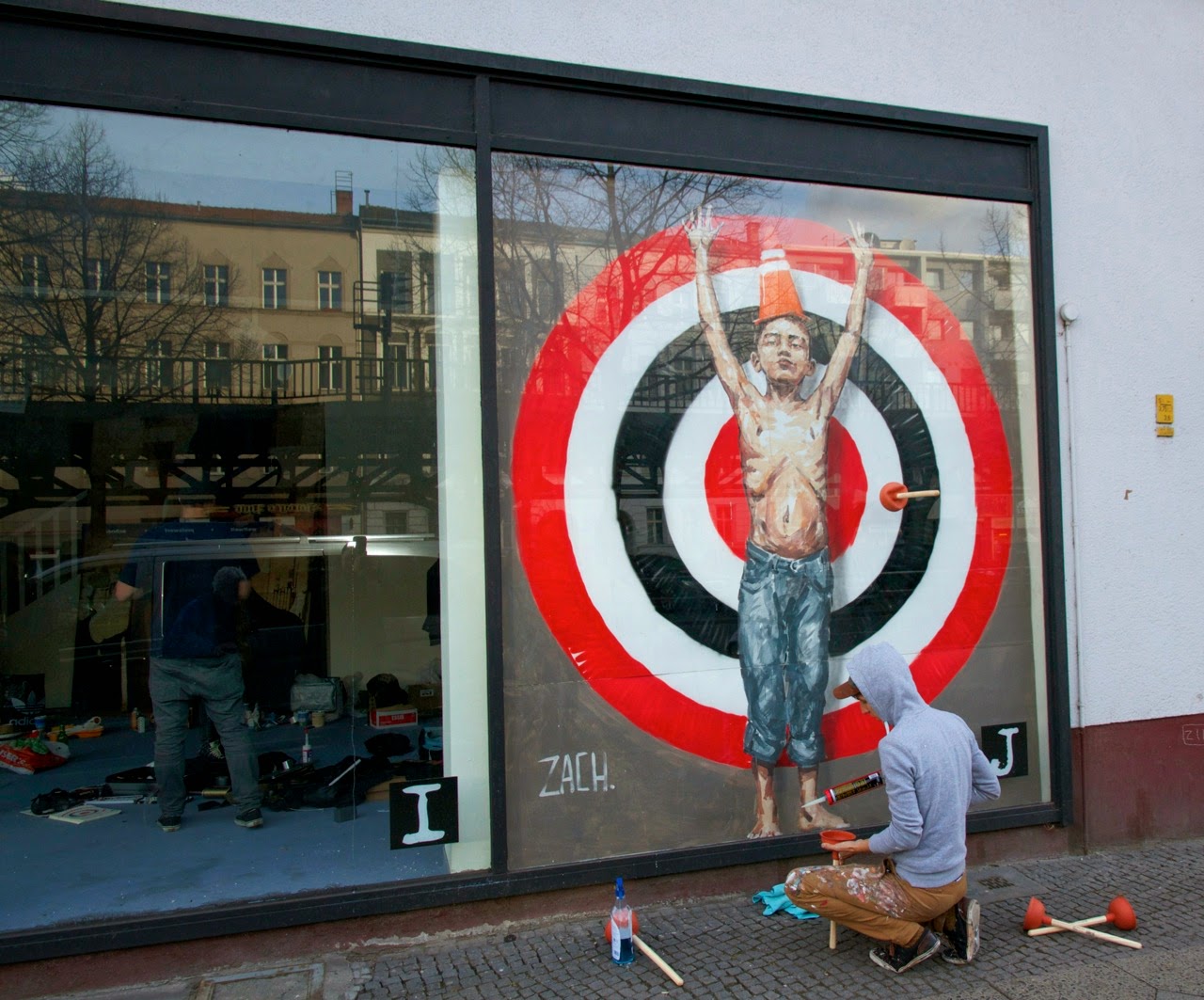 Project M is a temporary art project with the objective to improve the neighbourhood, to push creativity and to connect people. At regular intervals Urban Nation with director Yasha Young invites a group of internationally reclaimed contemporary urban artists to re-design the facade and shop windows of a prominent residential building in Berlin, while it is being reconstructed.