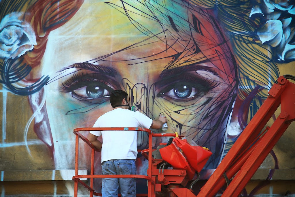 As usual with the French street artist, he drops a beautiful combination of some representational imagery with a painterly graffiti style.