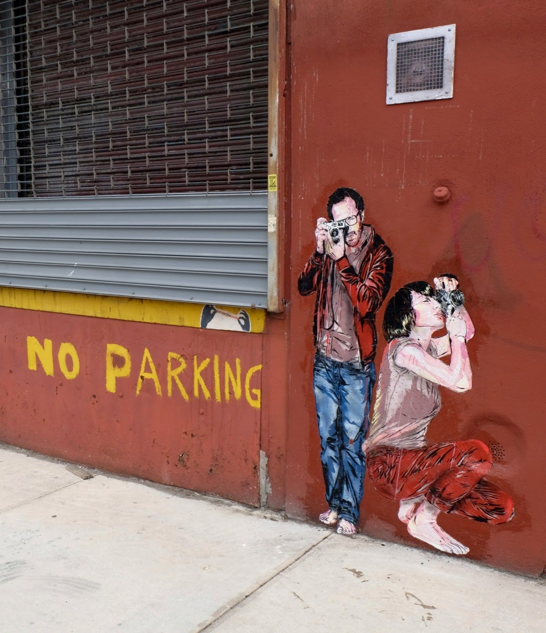 Normally a combination of portraiture with architecture their style is instantly recognisable. Keen photographers, the artists often include the camera within their work and seek inspiration from their photography. If you are in the area, you’ll be able to find these pieces in Bushwick.