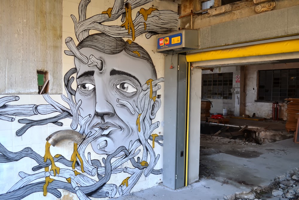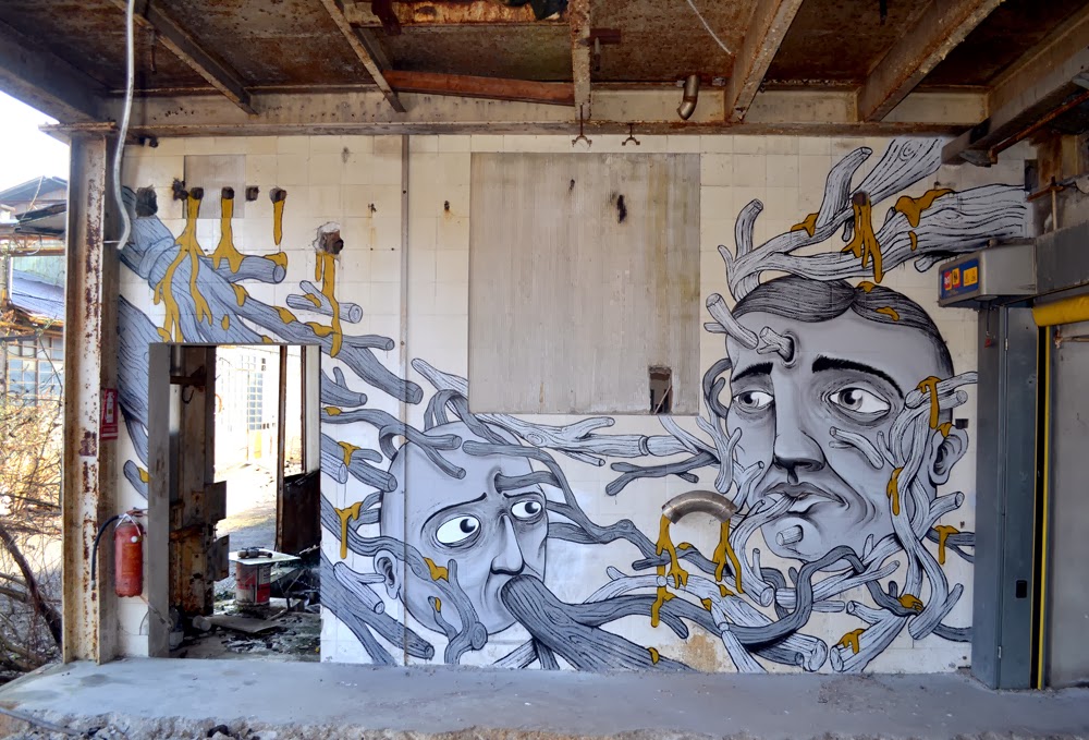 The Italian painter totally revitalised the derelict factory with this piece which is showing two of his distinctive characters.