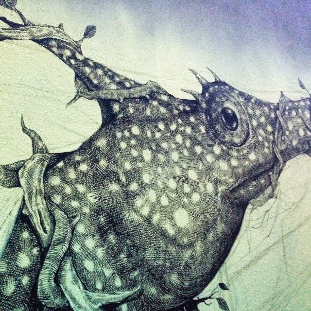 Invited to paint for the Public Forms Festival, the Puerto Rican artist and his tiny brushes spent two weeks working on this hyper-detailed hybrid seahorse.