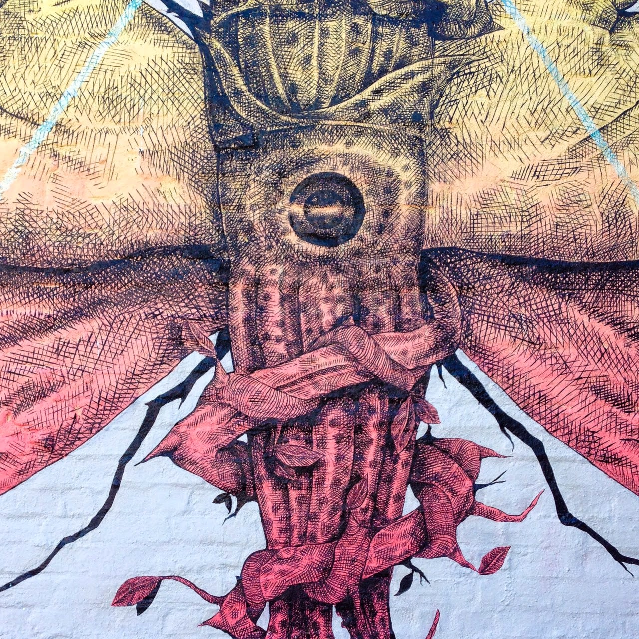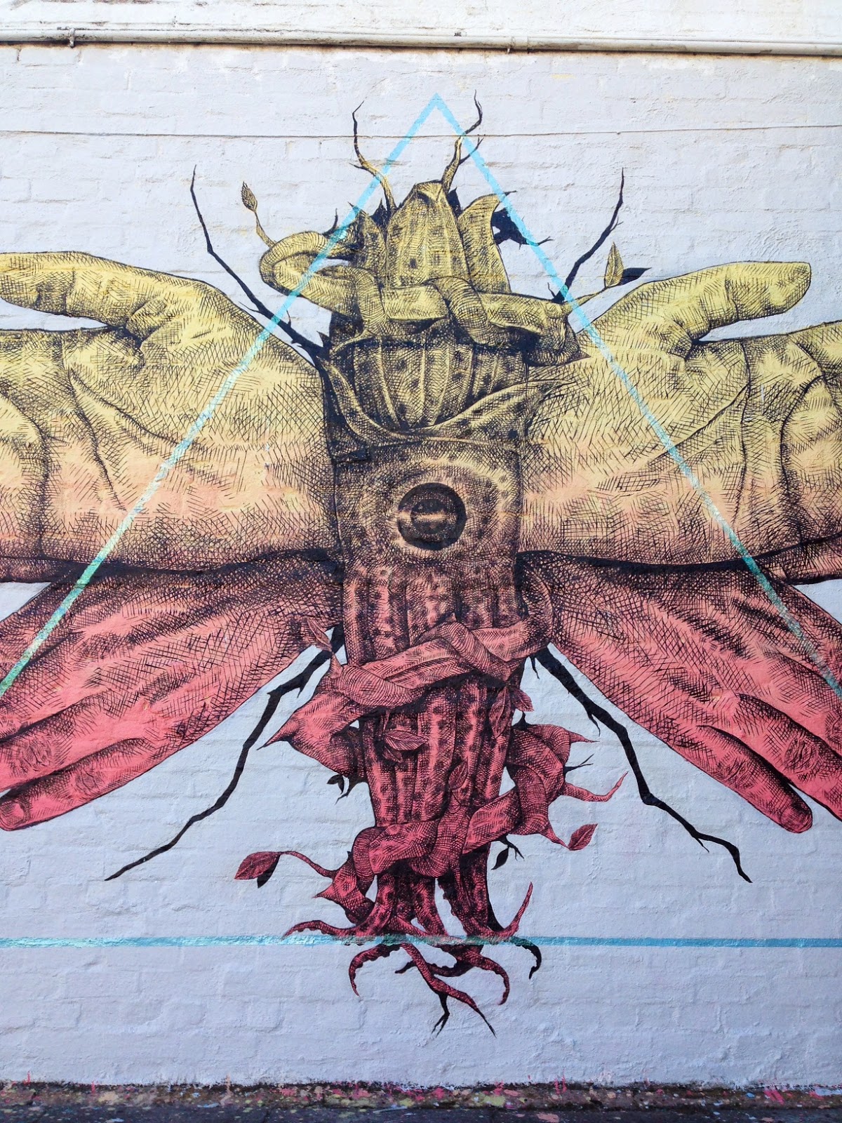 Day after day, the Puerto Rican artist worked his way through yet another of his hyper-detailed signature images with this hybrid butterfly composed by four human hands, roots and an octopus.
