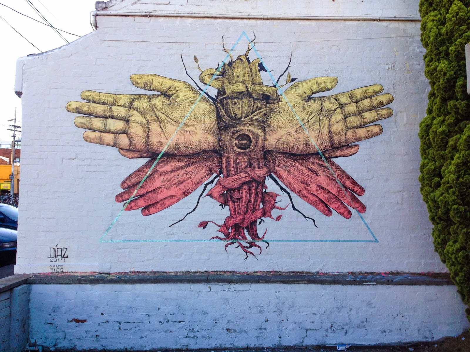 After a stunning piece in Perth for Public Form Festival (covered), Alexis Diaz quickly stopped by Melbourne where he worked his magic on this brand new street art piece.