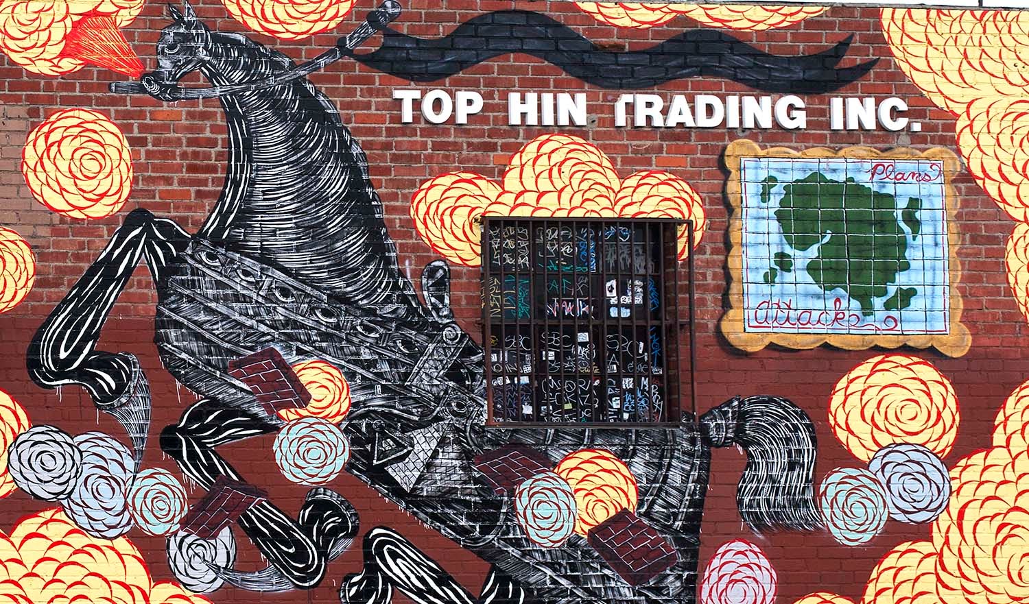Entitled “Imperial”, the American artist painted some of his signature kinetic imagery including some of the motifs that are often appearing in his work. The American contemporary artist is known for his clandestine street murals, and for making the crossover from street art into fine art.