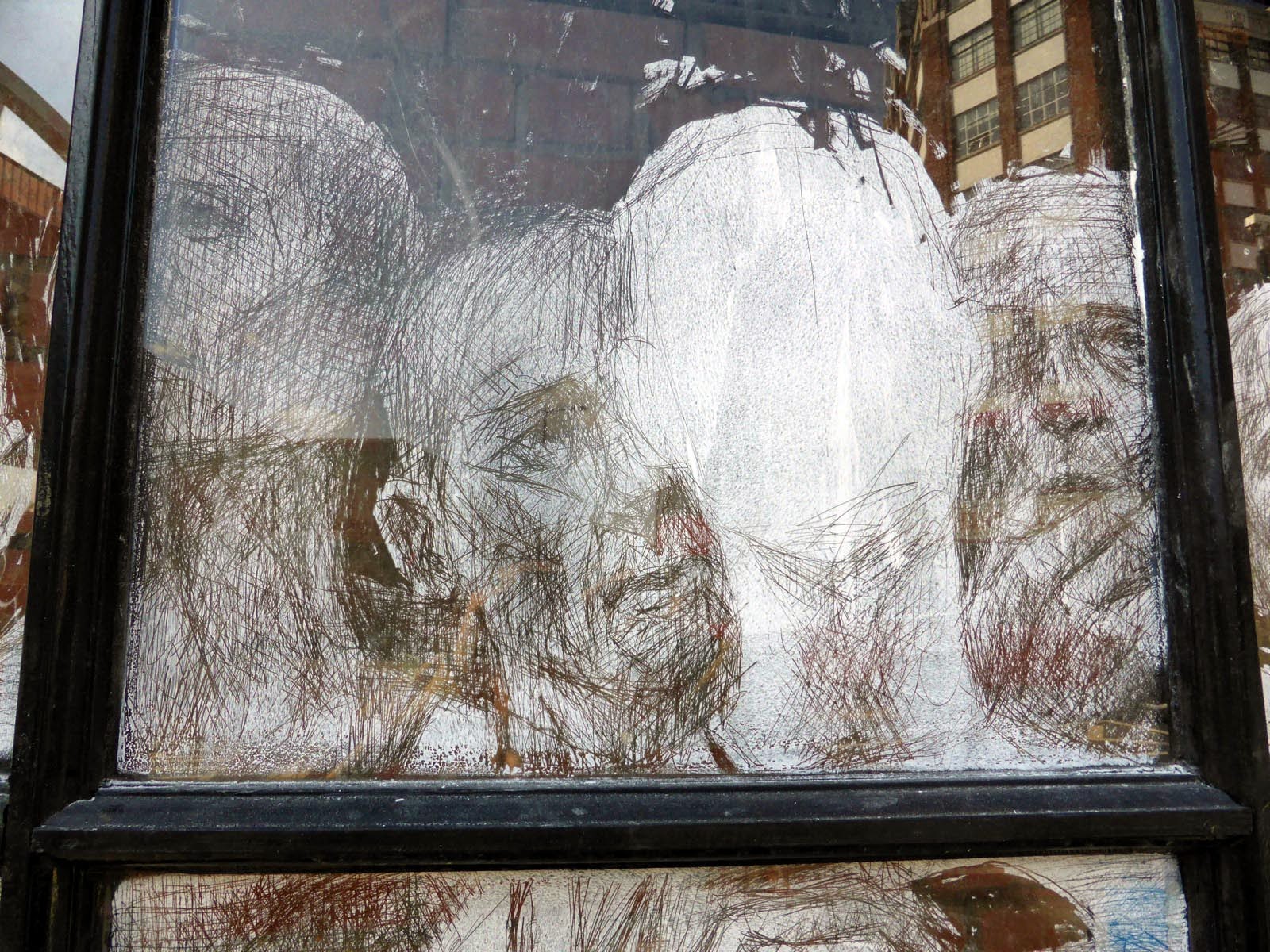 The Spanish artist is reinventing street art by using an original method of “glass scratching” inspired loosely by the recent economic crisis.”Where the crisis strikes, you will notice many shops that are either closed or empty. If you scratch the window slightly you will suddenly be able to see the inside of the shop. I find that quite poetic, glass has something beautiful about it. Sometimes I like to do the opposite of that. I apply black paint on commercial spotlights and by scratching the paint off the spotlight, I allow light to pass through.”
