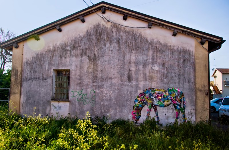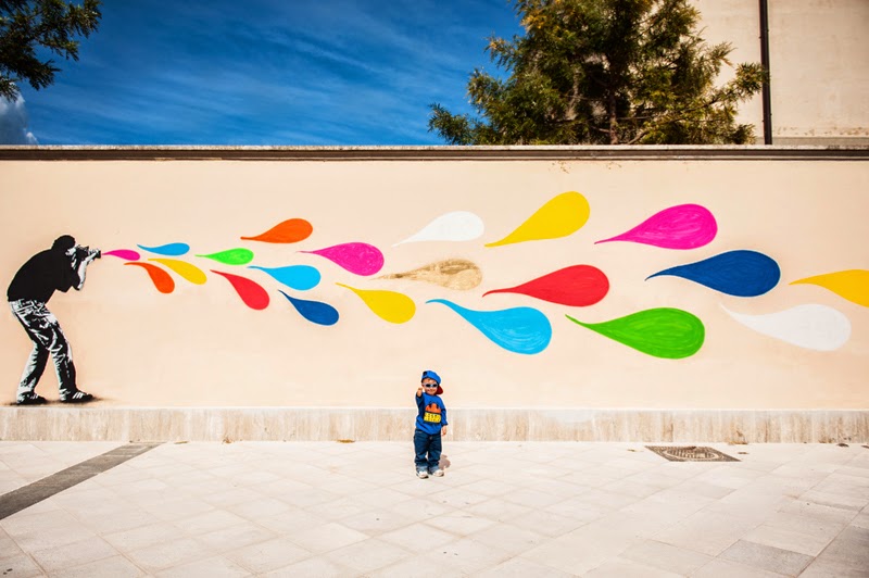 Painting on the streets of Gaeta and Terracina for the always excellent Memorie Urbane Street Art Festival, the Norwegian painter dropped some of his signature colourful stencils for the locals to enjoy.