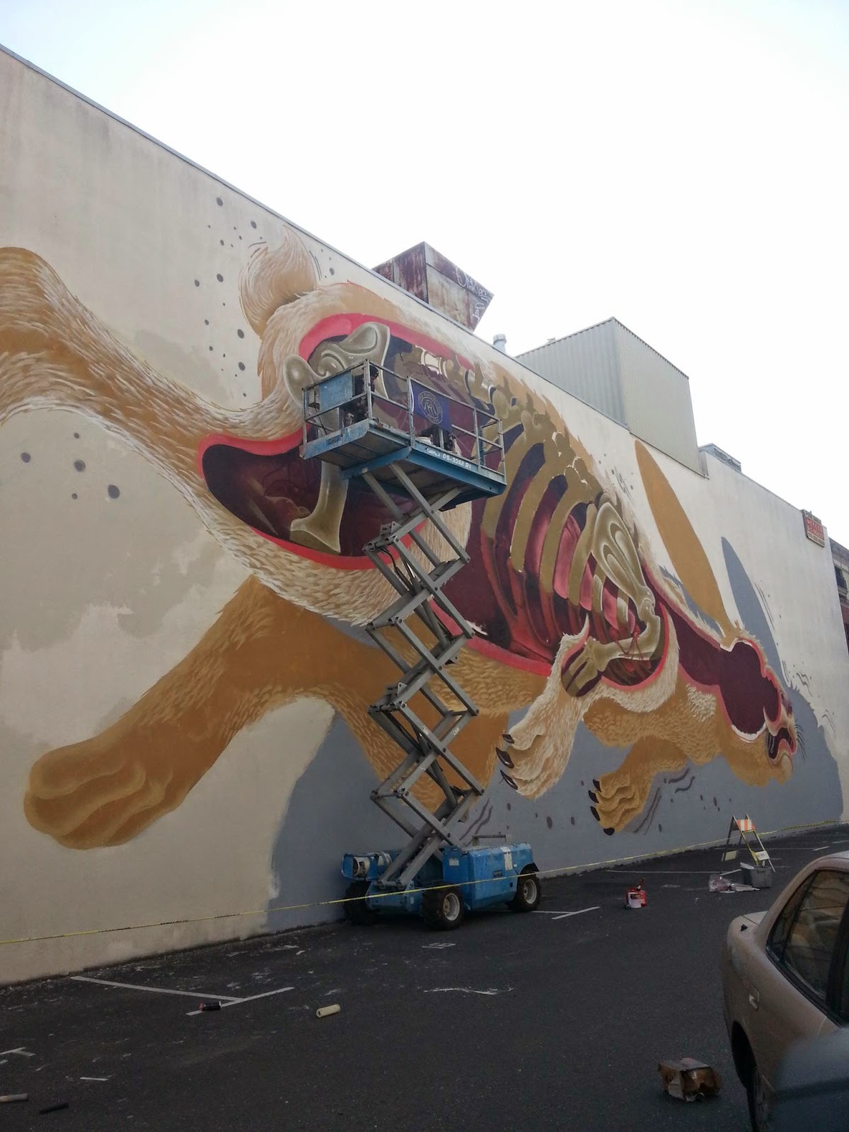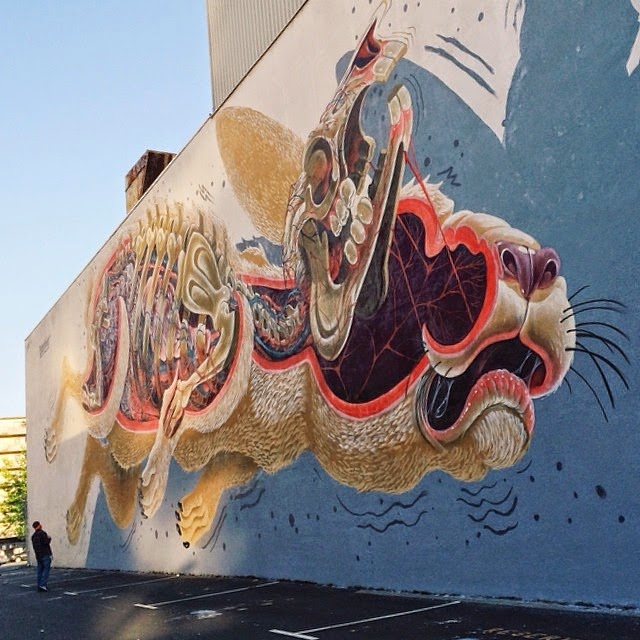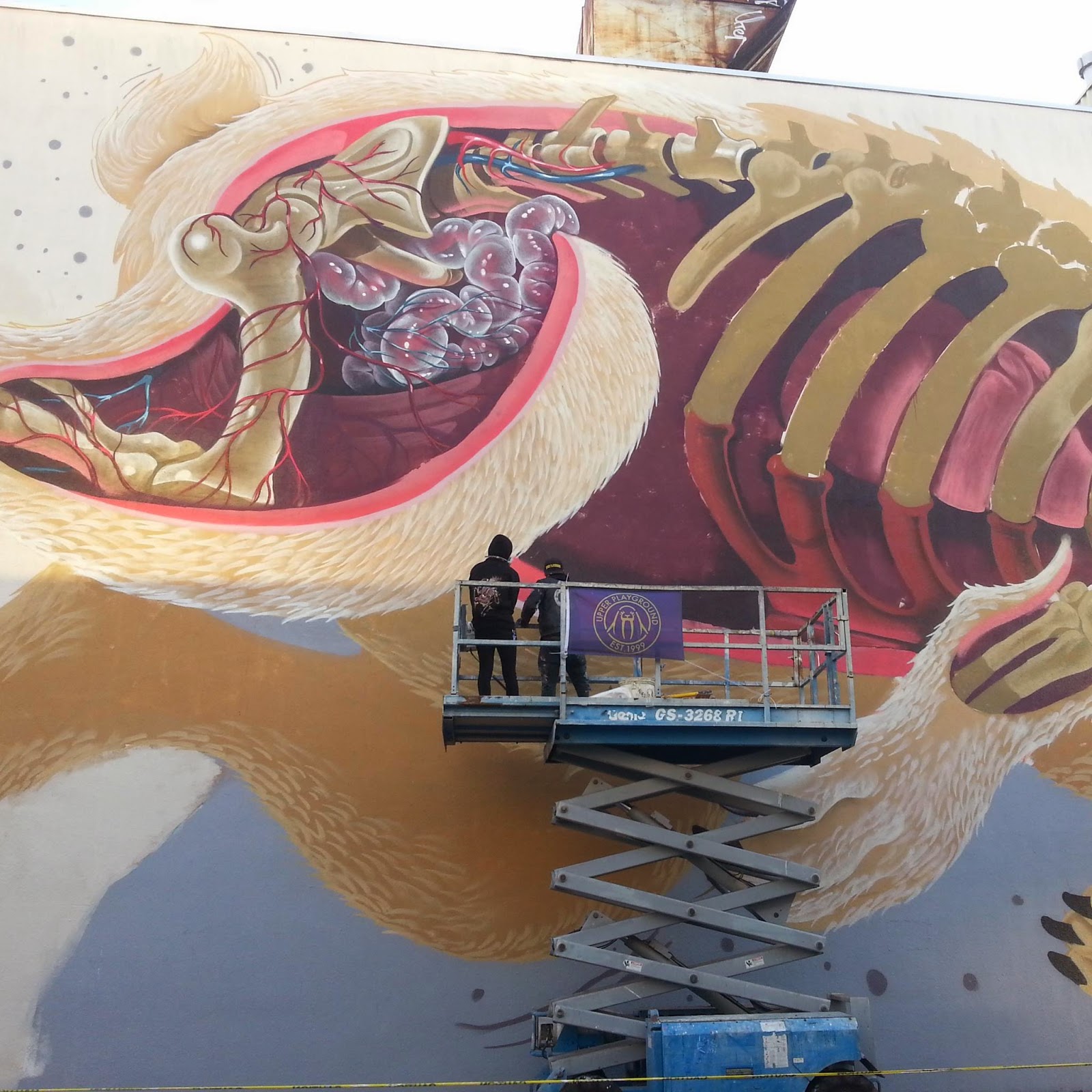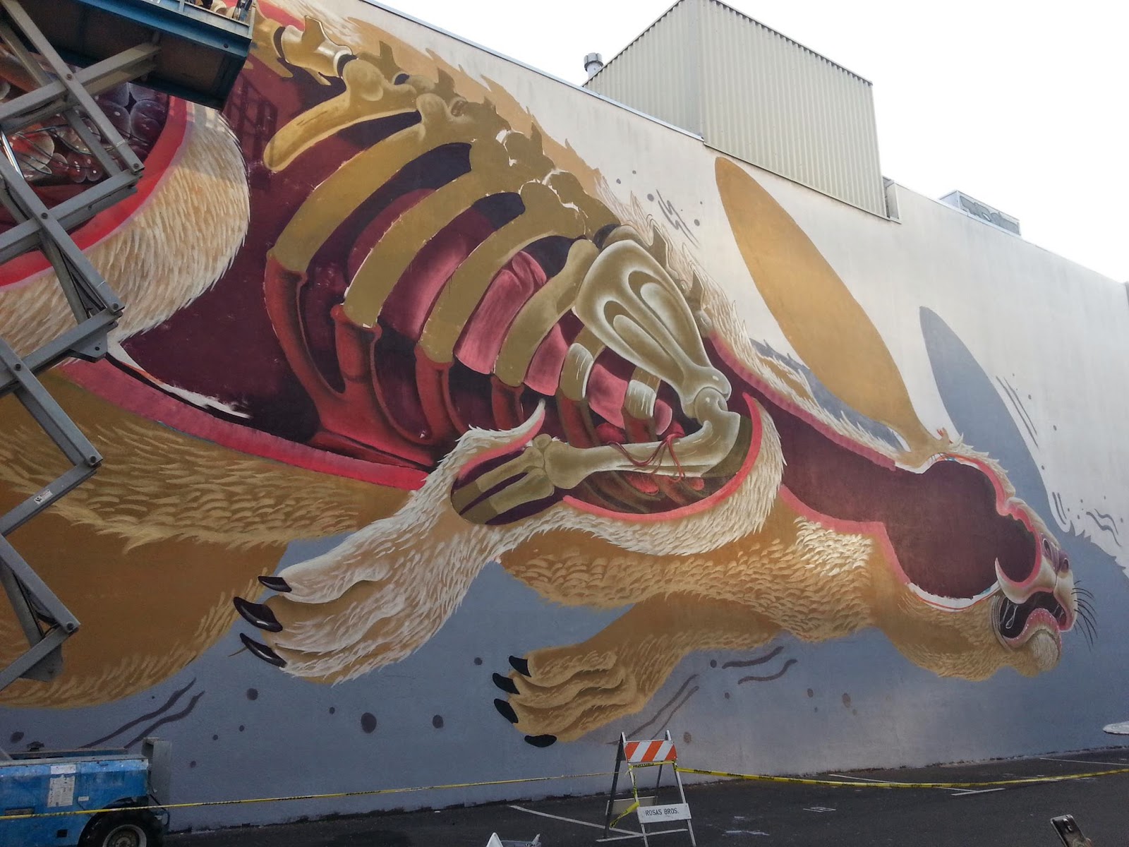 Organised by Upper Playground and Fifty24SF, the Austrian street artist went big with this signature piece which is showing the dissection of an Easter rabbit.