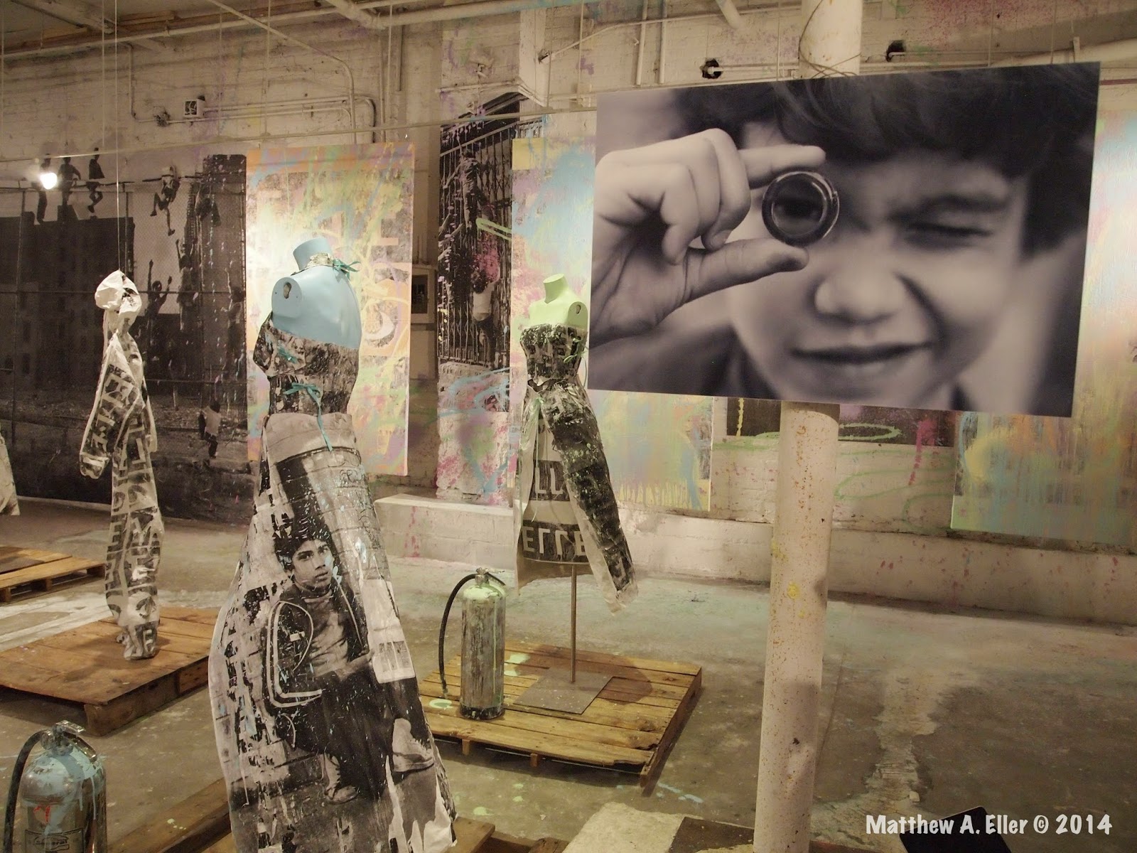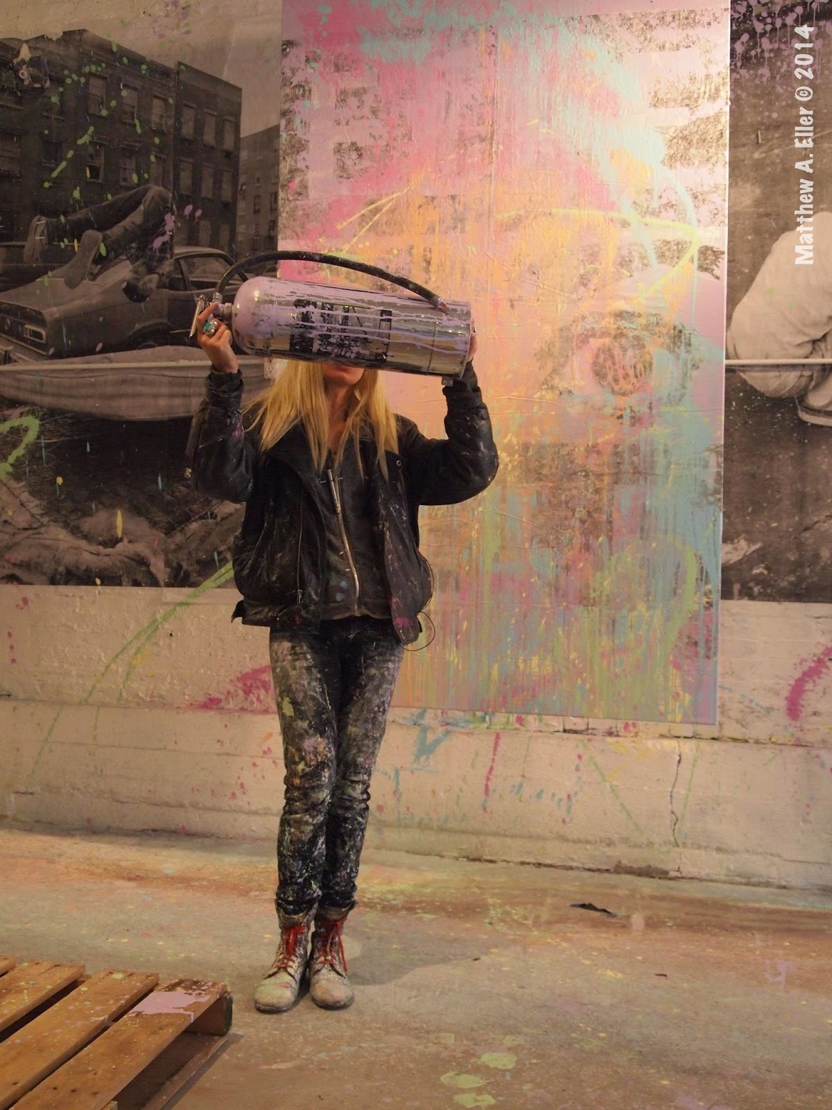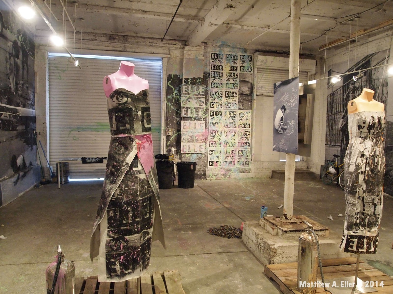 Once again, old school meets new school… the classic black and white photos of Martha Cooper are revolutionized by Elle using a photo transfer of wheat pasted Cooper images on dresses, that were then worn by Elle while she used fire extinguishers to paint the gallery, while Cooper photographed her painting… While the entire event was video taped (the video will be on display at the opening tomorrow night). Wow… it will all make sense when you enter the space tomorrow night ; )