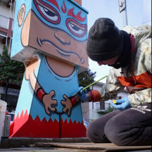 4) Gigantic Elle 8 ft. X 5 ft. pastel hand painted original mixed media pieces (6K) & one of a kind painted fire extinguishers (1K):