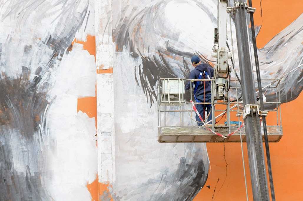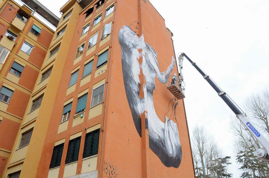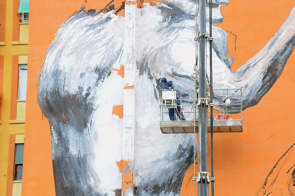 The prolific Belgian street artist painted a beautiful monochromatic mural featuring one his loveable animals as subjects. The street art event was curated by Stefano Antonelli and 999Gallery.