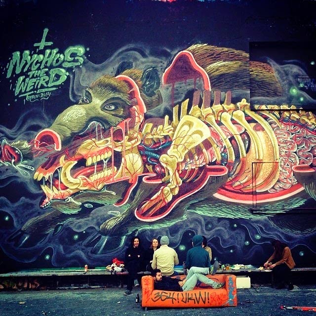 The Australian artist quickly worked his way through this new dissection which is showing the insides of a Wild Boar. This piece was made possible thanks to Urban Spree and Pictoplasma.