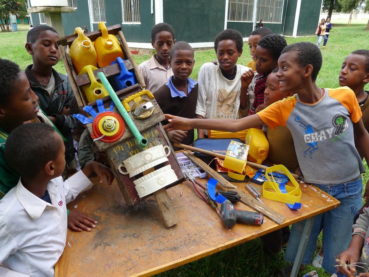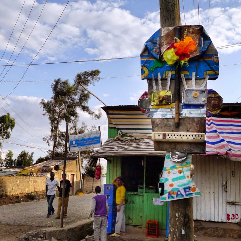RAE is painting murals and outside, teaching local school kids how to make sculptures out of recycled materials as well as having a small exhibition inside the home of a family he met in Hossana.