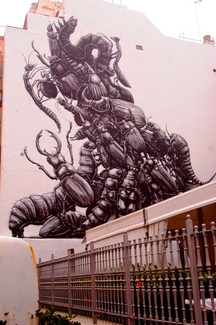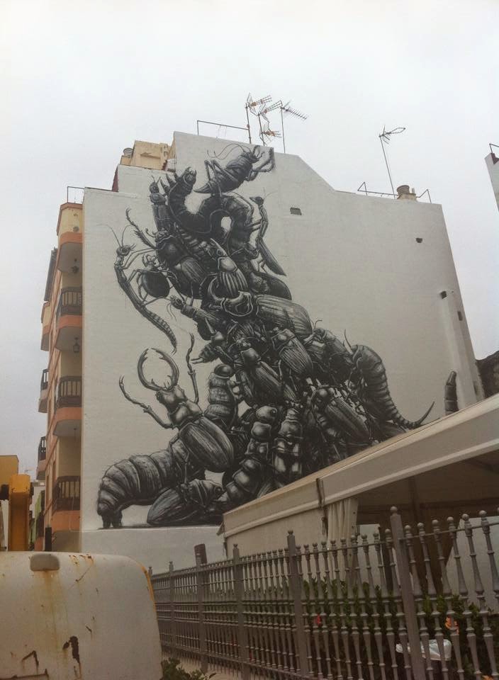 The Belgian street artist painted a massive piece which is showing a bunch of creepy insects. If you are in the area, the piece can be found close to the Calle El Lomo and the Museo Arqueologico.