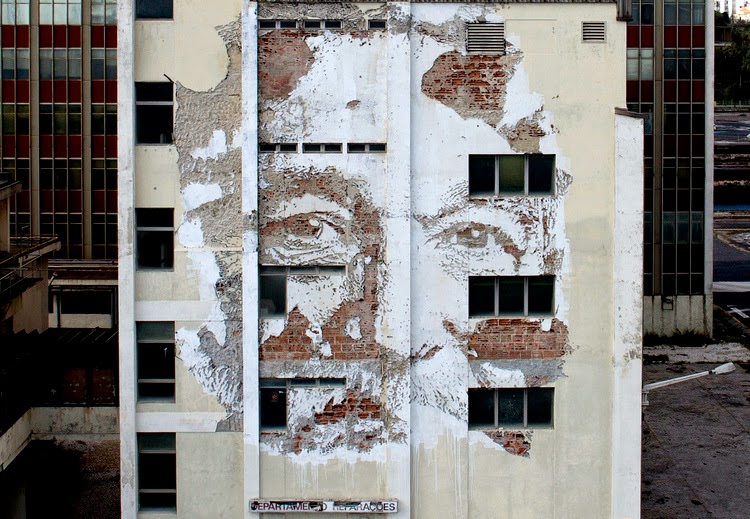 Vhils just sent us a series of sweet pictures from his newest piece which he just completed somewhere on the streets of Lisbon, Portugal.