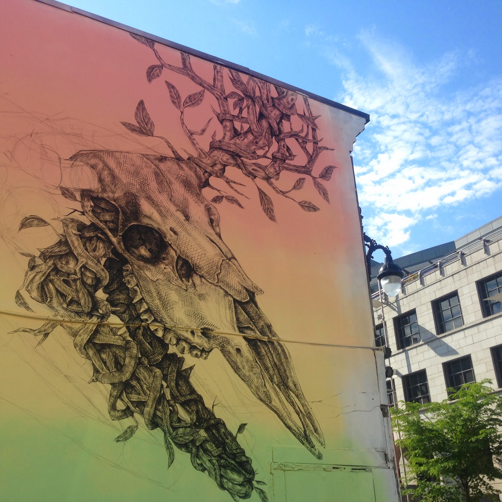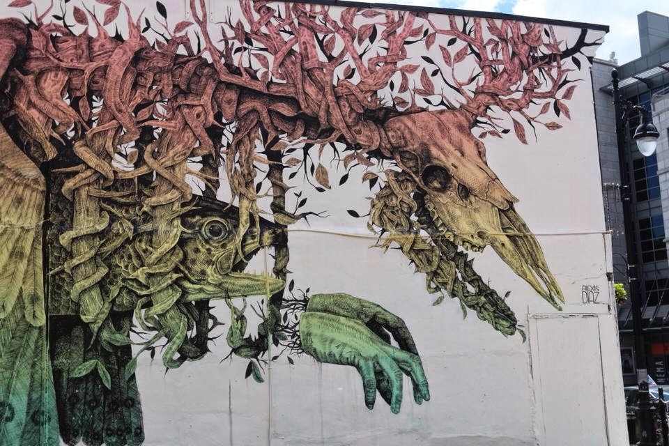 Battling through the rain, the Puerto Rican muralist spent a week working on this impressive and stunning artwork. Using notoriously tiny brushes, Alexis Diaz dropped this highly-detailed hybrid creature.