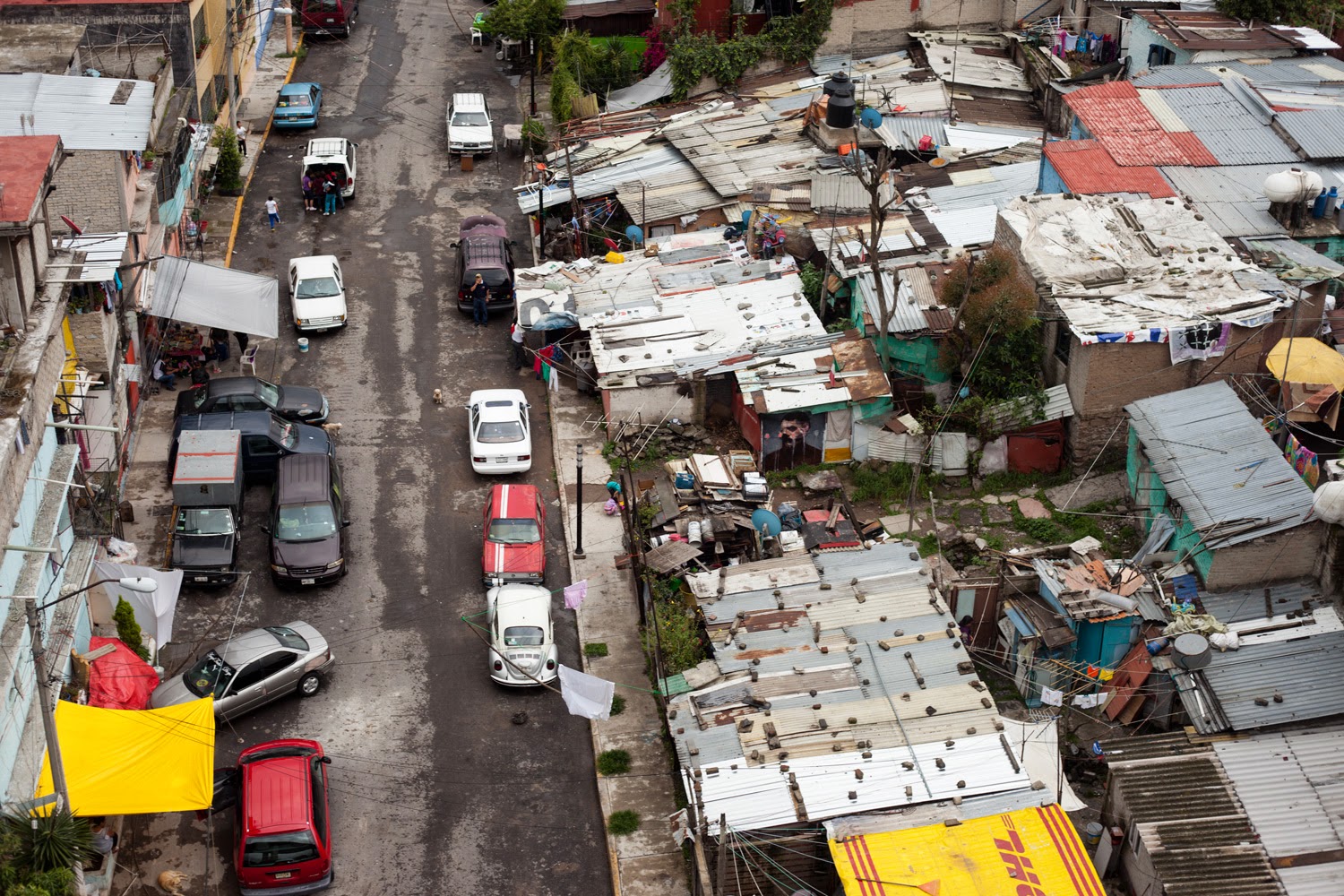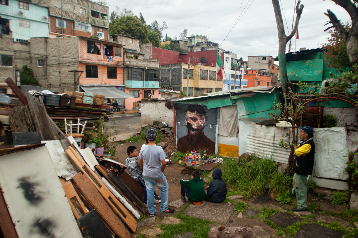 Hornos (Ovens) is a neighborhood next to where GraffitiWorld has its office. It got its name because there used to be two big brick ovens in this neighborhood. After passing by everyday through the bridge of Alta Tension, and seeing the neighborhood on one side and a very colorful cemetery on the other, I decided to paint the view of the neighborhood from the bridge. I spent a lot of time detailing all of their small streets and roof tops in the painting, yet I felt like a spectator or a tourist, since I was analyzing them from far away but had not actually walked down to see from the inside. So I thought doing a mural there would be a nice idea.