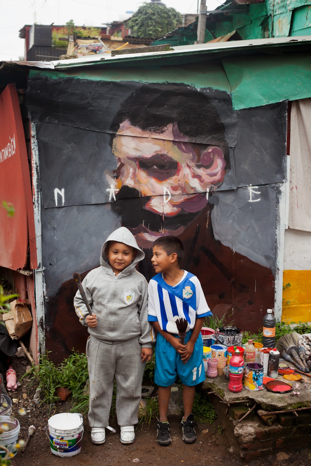 Once I was done with the mural they invited me to play soccer in this beautiful five-a-side pitch they had under the bridge. Many of the people from the neighborhood came to watch the game, where both kids and adults had a kick about. After I came back from playing soccer, I was surprised to find that they covered the text on my wall that read “Nadie” (Nobody), but respected the rest of the piece.
