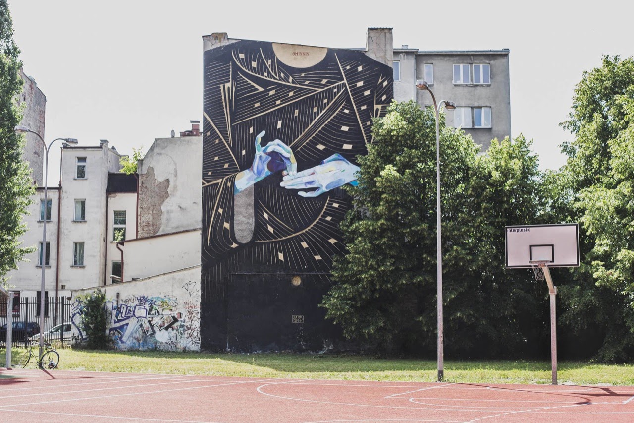 In town for the 2014 edition of the Traffic Design Street Art Festival, the Italian muralist painted this character hidden under a black and gold robe against vibrant blue hands that really pops.