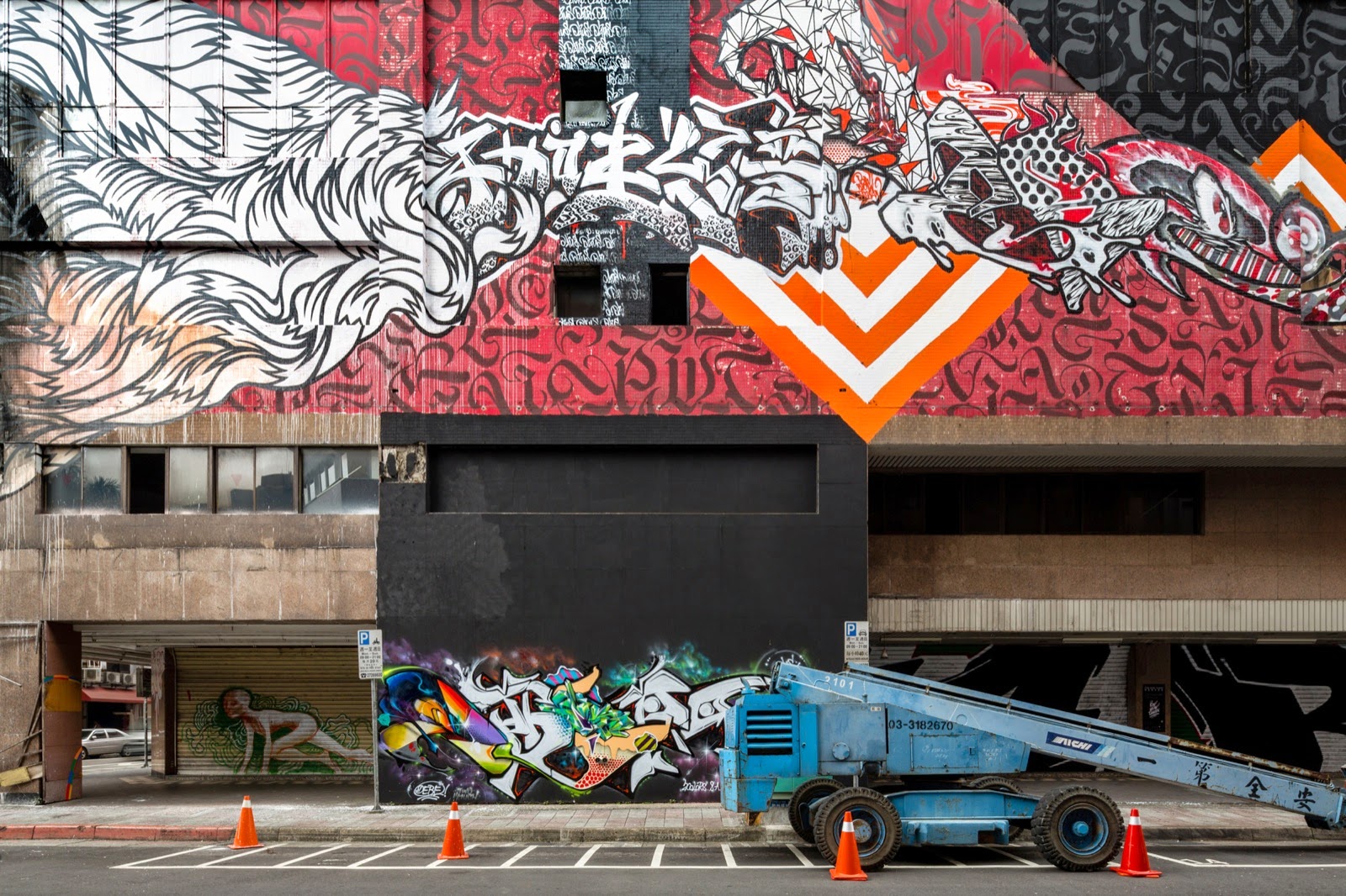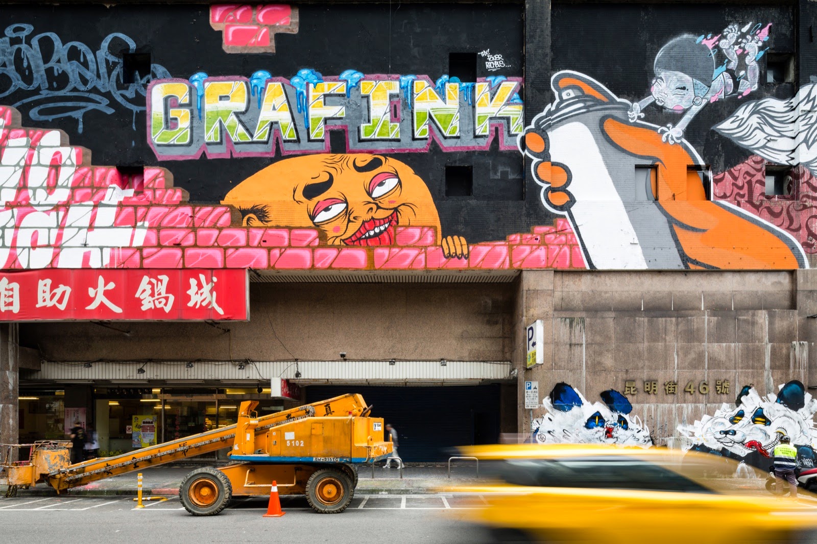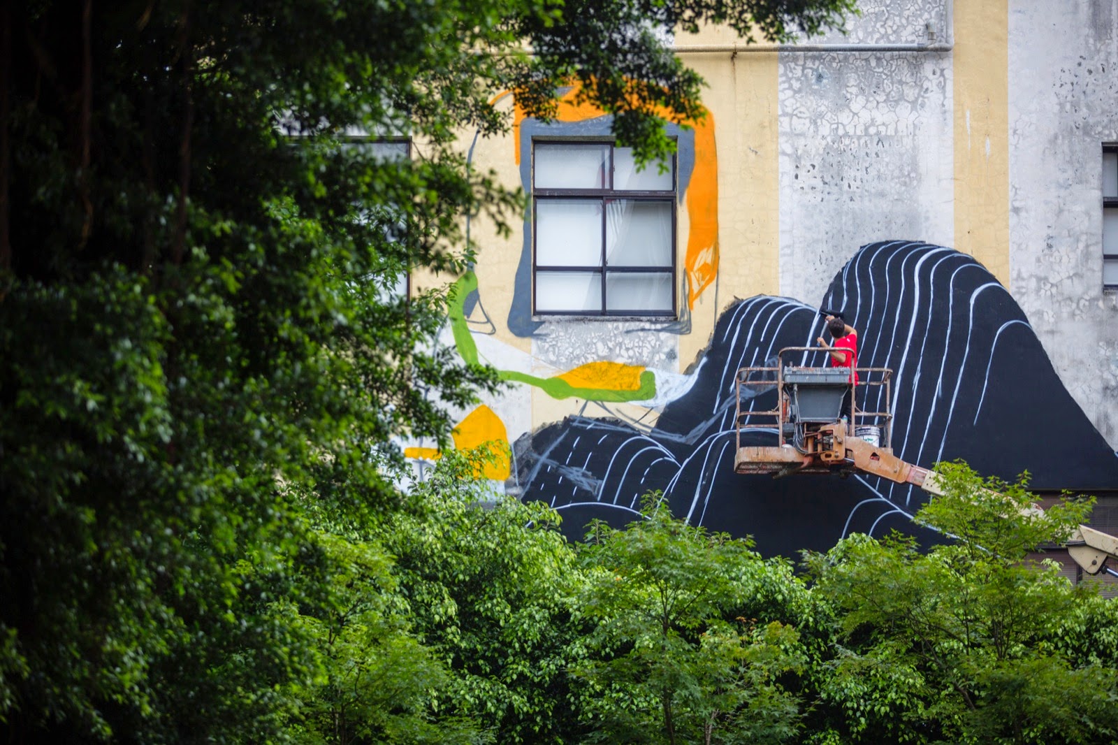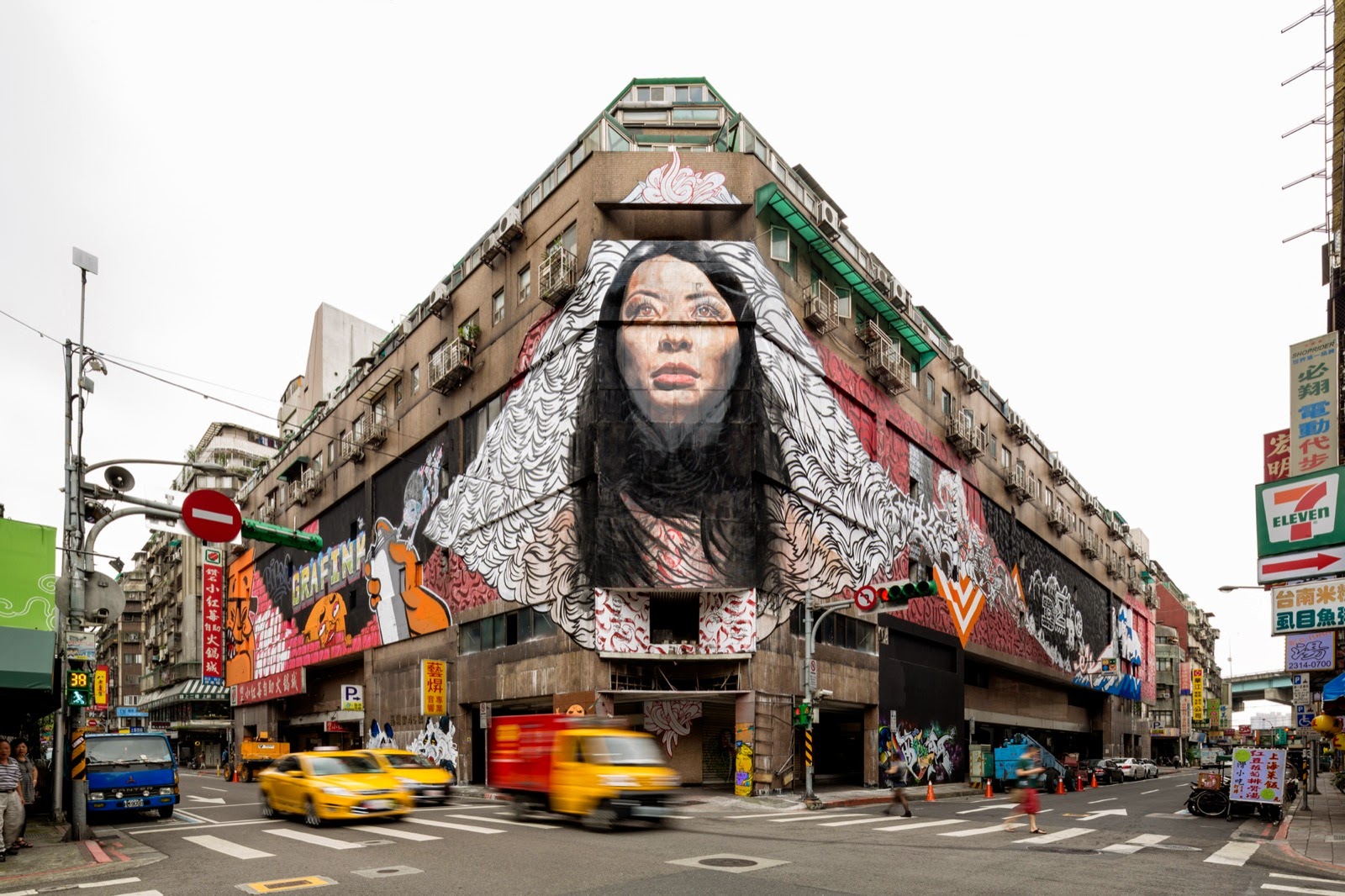 After beautifying the streets of Hong-Kong and Hawaii, Jasper Wong and the POW! WOW! team decided to invade Taiwan and the city of Taipei. Curating together an elite line-up with Apex, Dabs, INSA, Aaron De La Cruz, Brendan Monroe, RONE, Madsteez and local gems like Reach, Serazk, Saym, Xue, Vita Yang and Mr OGAY. Organised around the art event, there were parties with DJ Neil Armstrong; art and media lectures at the Taipei Zoo, concerts featuring the Electro Summit Gun; and an humorous exhibition with Skewville at the Yo Gallery featuring his “Brooklyn Beef” series at the Zhongshan Metropolitan Mall.