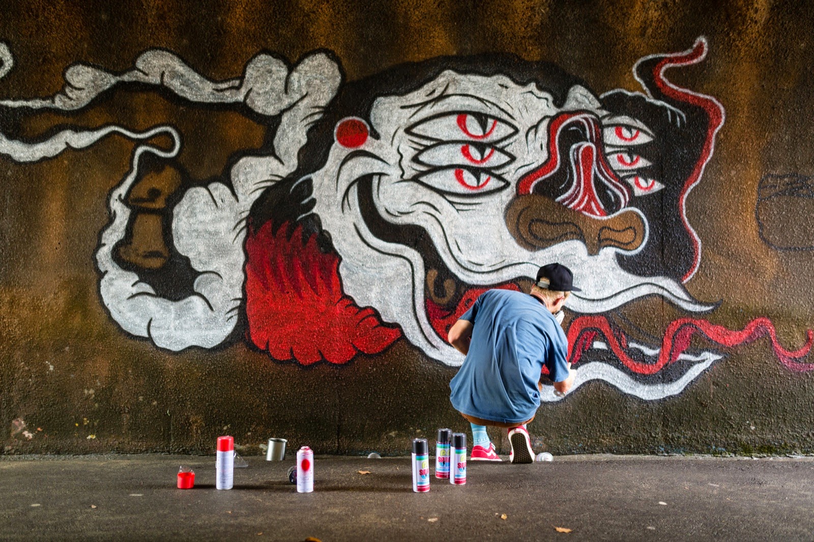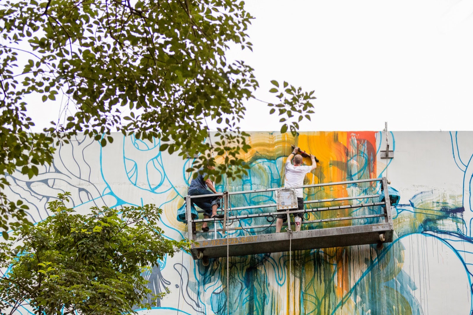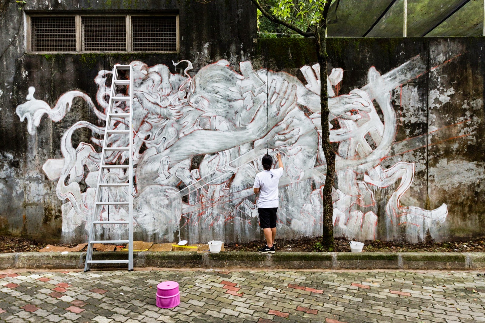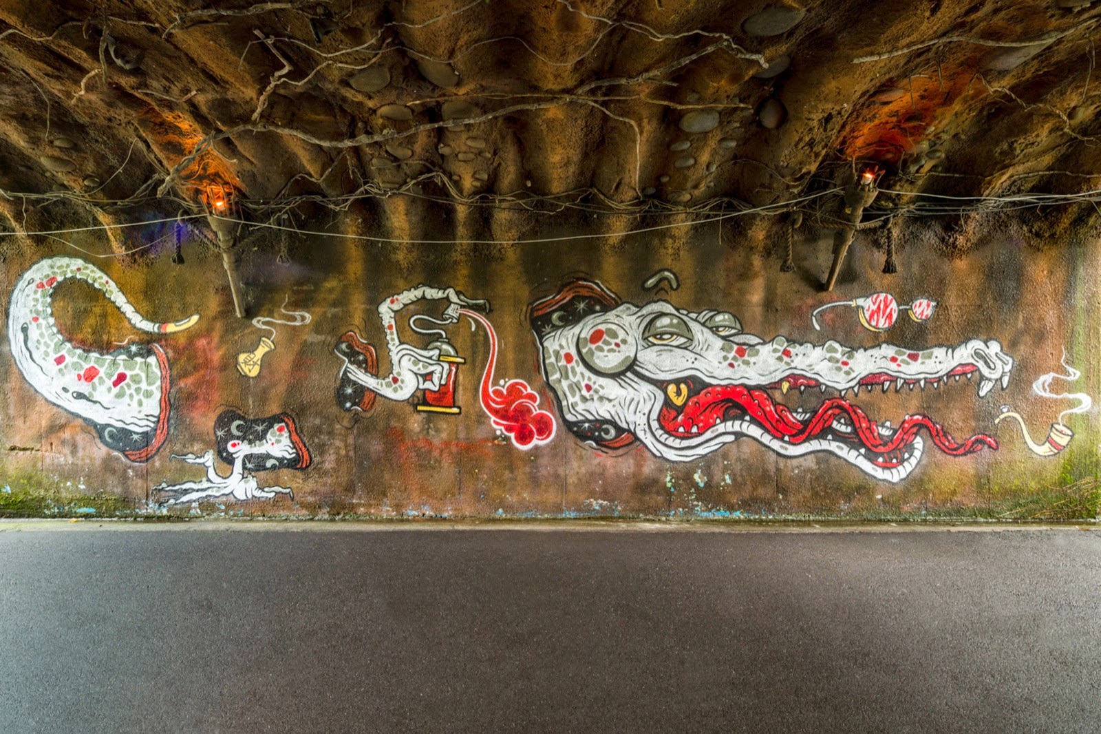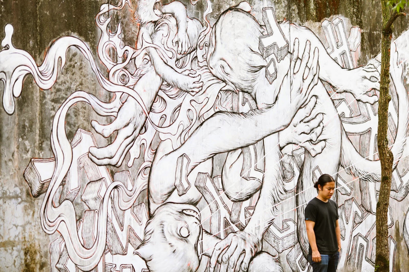 After beautifying the streets of Hong-Kong and Hawaii, Jasper Wong and the POW! WOW! team decided to invade Taiwan and the city of Taipei. Curating together an elite line-up with Apex, Dabs, INSA, Aaron De La Cruz, Brendan Monroe, RONE, Madsteez and local gems like Reach, Serazk, Saym, Xue, Vita Yang and Mr OGAY. Organised around the art event, there were parties with DJ Neil Armstrong; art and media lectures at the Taipei Zoo, concerts featuring the Electro Summit Gun; and an humorous exhibition with Skewville at the Yo Gallery featuring his “Brooklyn Beef” series at the Zhongshan Metropolitan Mall.