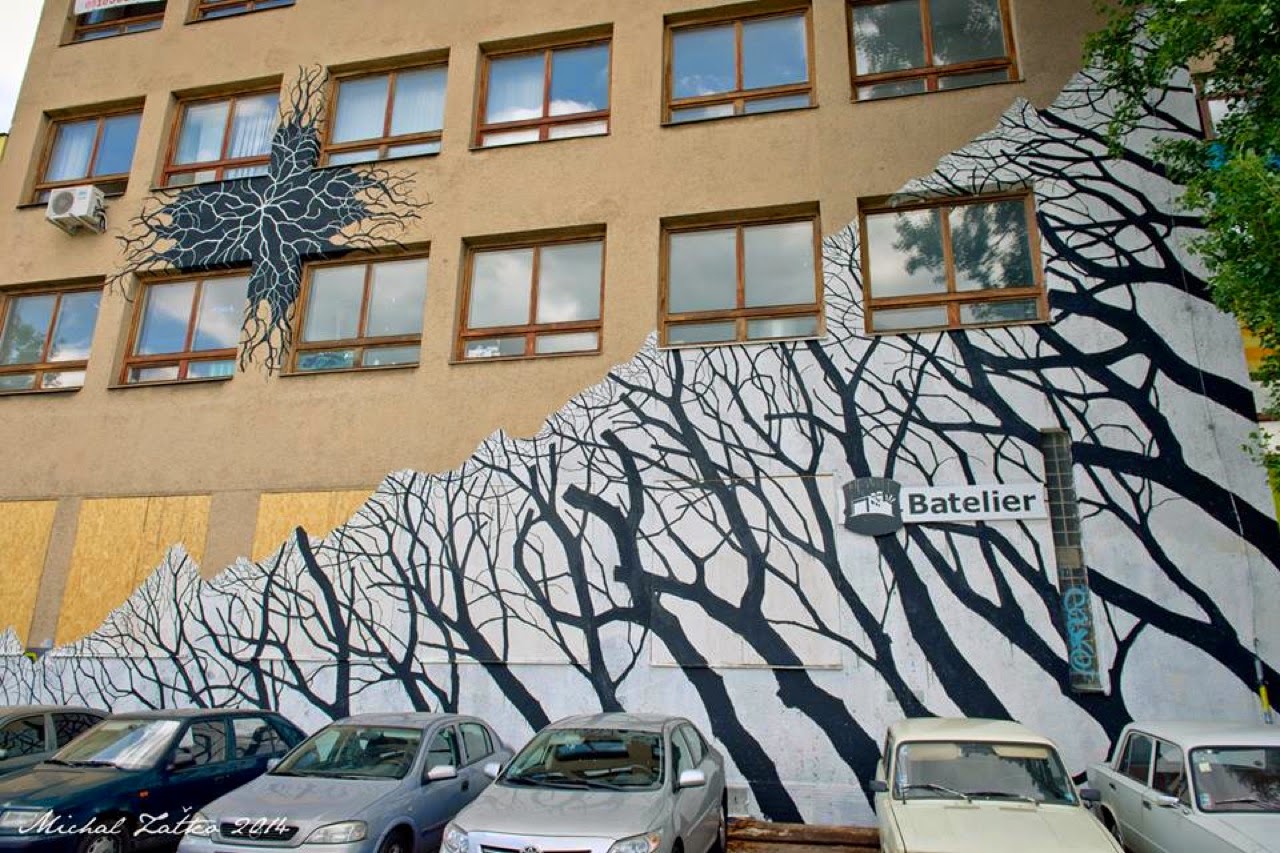 Along with Fin DAC, Mau Mau or Alice, Pablo S. Herrero was also in Slovakia last week-end where he was invited to paint for the Bratislava Street Art Festival.