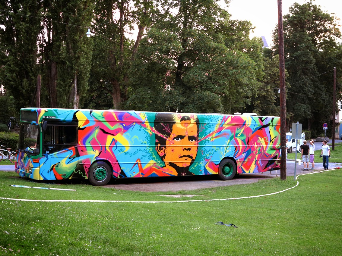 No walls was waiting for Stinkfish in Graz but an oldschool city bus which was quickly transformed into a piece of art by the Colombian artist. Pimp my Bus!