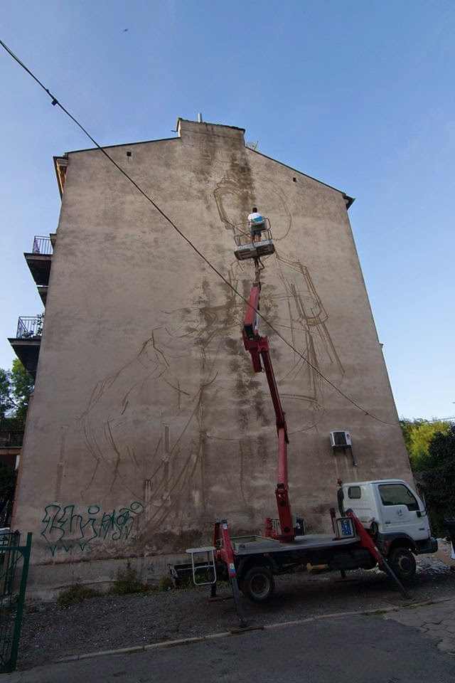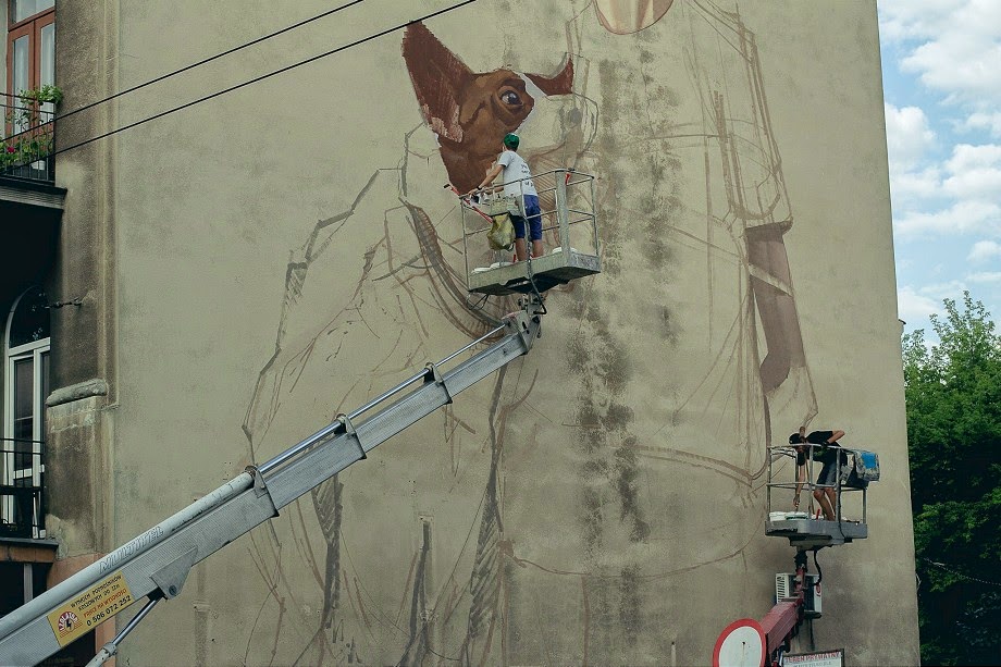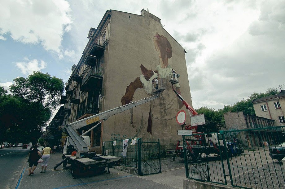 This mural can be seen @ Lubartowskiej 57 in Lublin, and you can find more process photos after the jump, and expect more news from Poland to come soon!