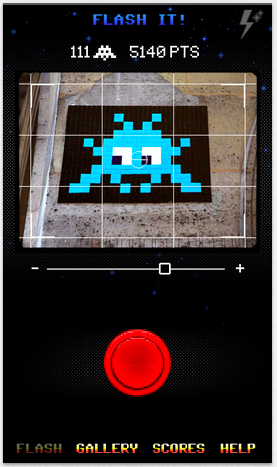 After several months of development and beta-testing, Paris-based Invader just released his new iOS app entitled “FlashInvaders”. With “FlashInvaders”, you will be able to track down Invader’s mosaics, flash them, score points and compete with other players on your social medias. All your authenticated photos will also be sent to Invader’s website and accessible by other players. Another amazing cross-over for Street Art and technology!
