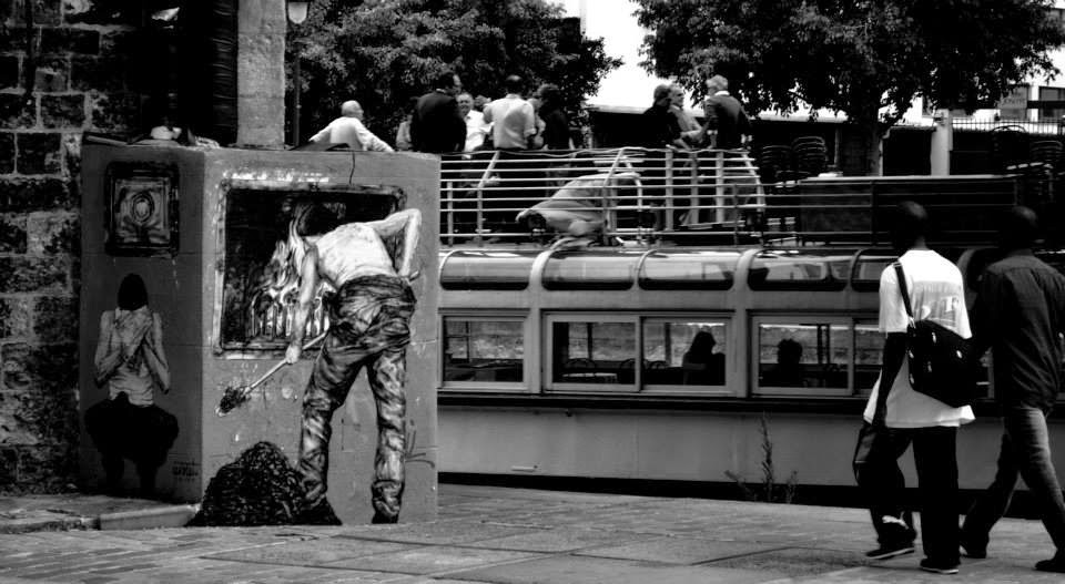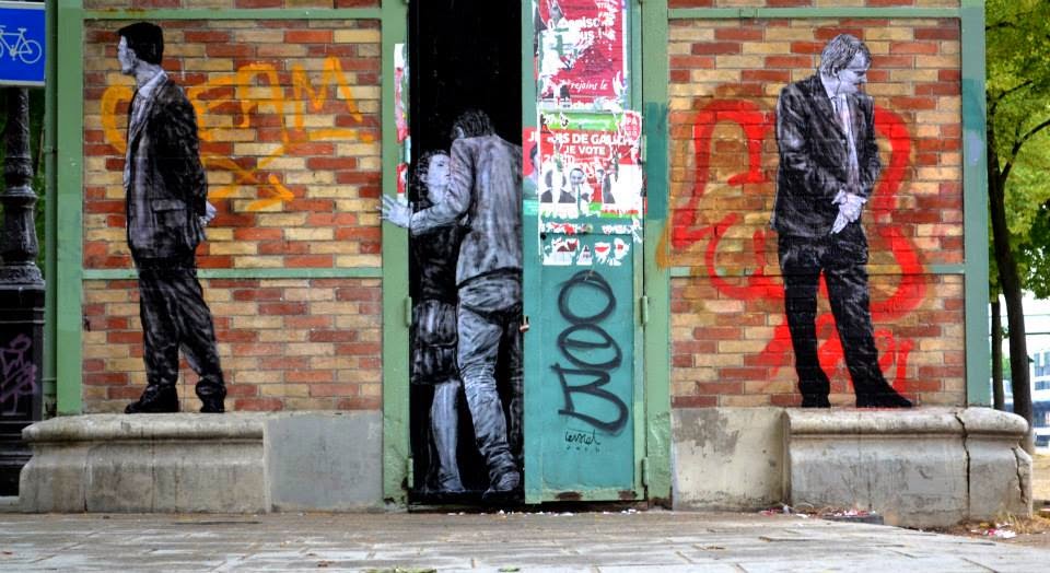 Charles Leval better known as Levalet has an especially playful style of street art. He creates life-sized wheat paste posters of people that seem to be interacting with the surrounding neighbourhood, some playful and others more mischievous.