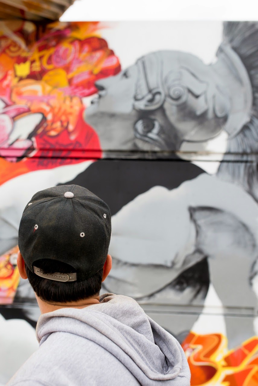 The Valencia-based street art duo quickly worked their magic through this series of large pieces showing some of their trademark greek statues against a graffiti background that really pops.