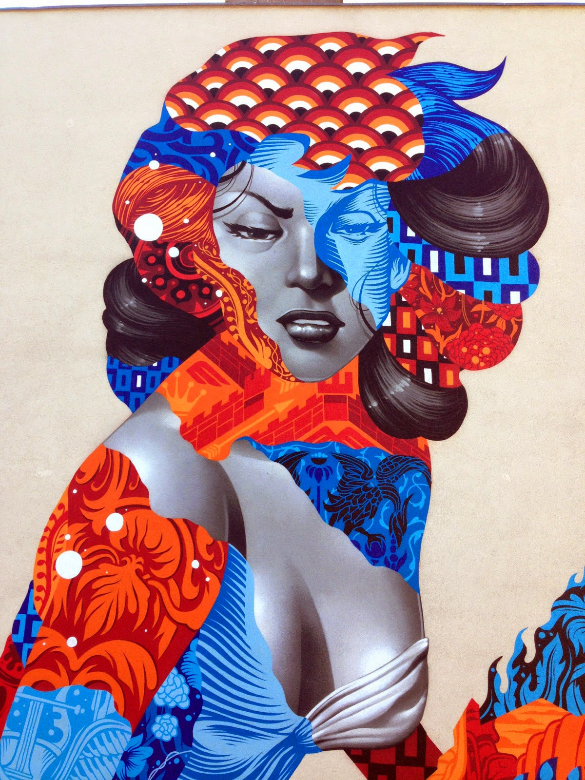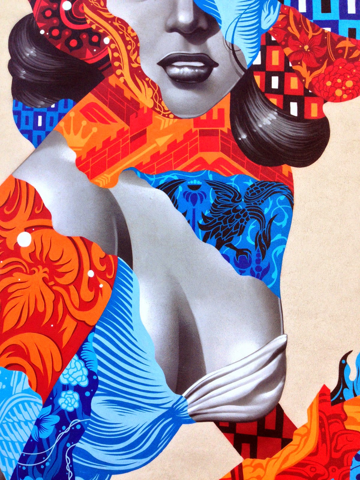 Painting on the streets of Berlin, the American muralist dropped this fantastic new piece showing his a remix of the iconic “Attack of the 50 Foot Woman” movie poster.