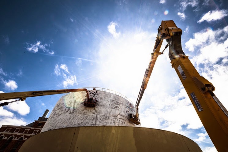 After months of working on his massive museum show Dissection, opening on the 4th of July in Lisbon, Vhils literally rounded up the preparations with this exceptional mural right outside of the museum.