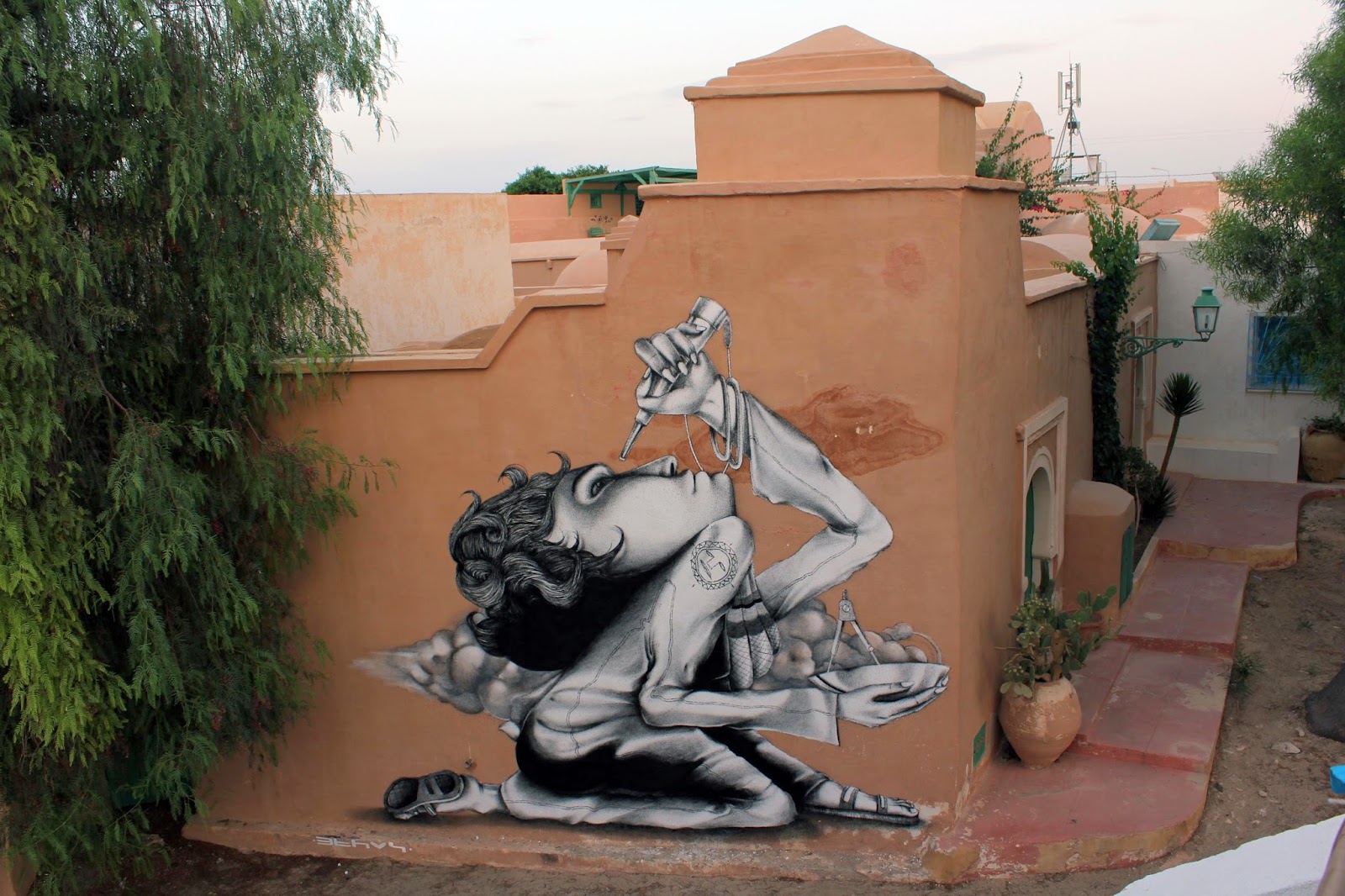 Our friend Claudio Ethos was also invited on the island of Djerba to paint for the Djerbahood project in Tunisia.