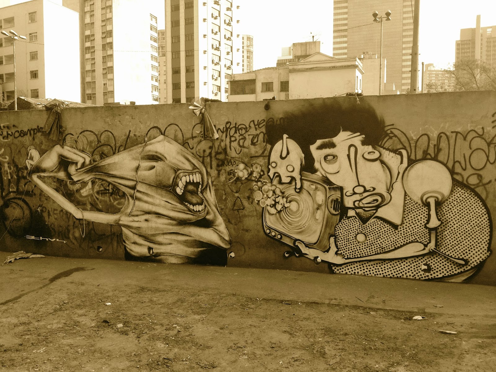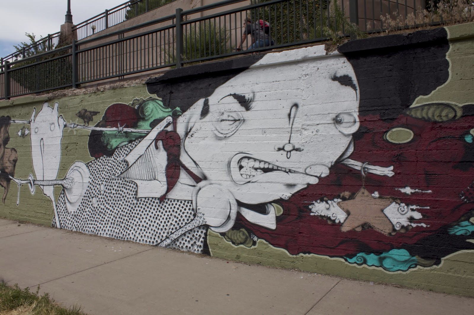 While in Denver, the Brazilian muralist hooked up with his friend Onesto to work on several collaborations. The Volkswagen and the screaming guy are solo pieces which were painted in Sao Paulo.