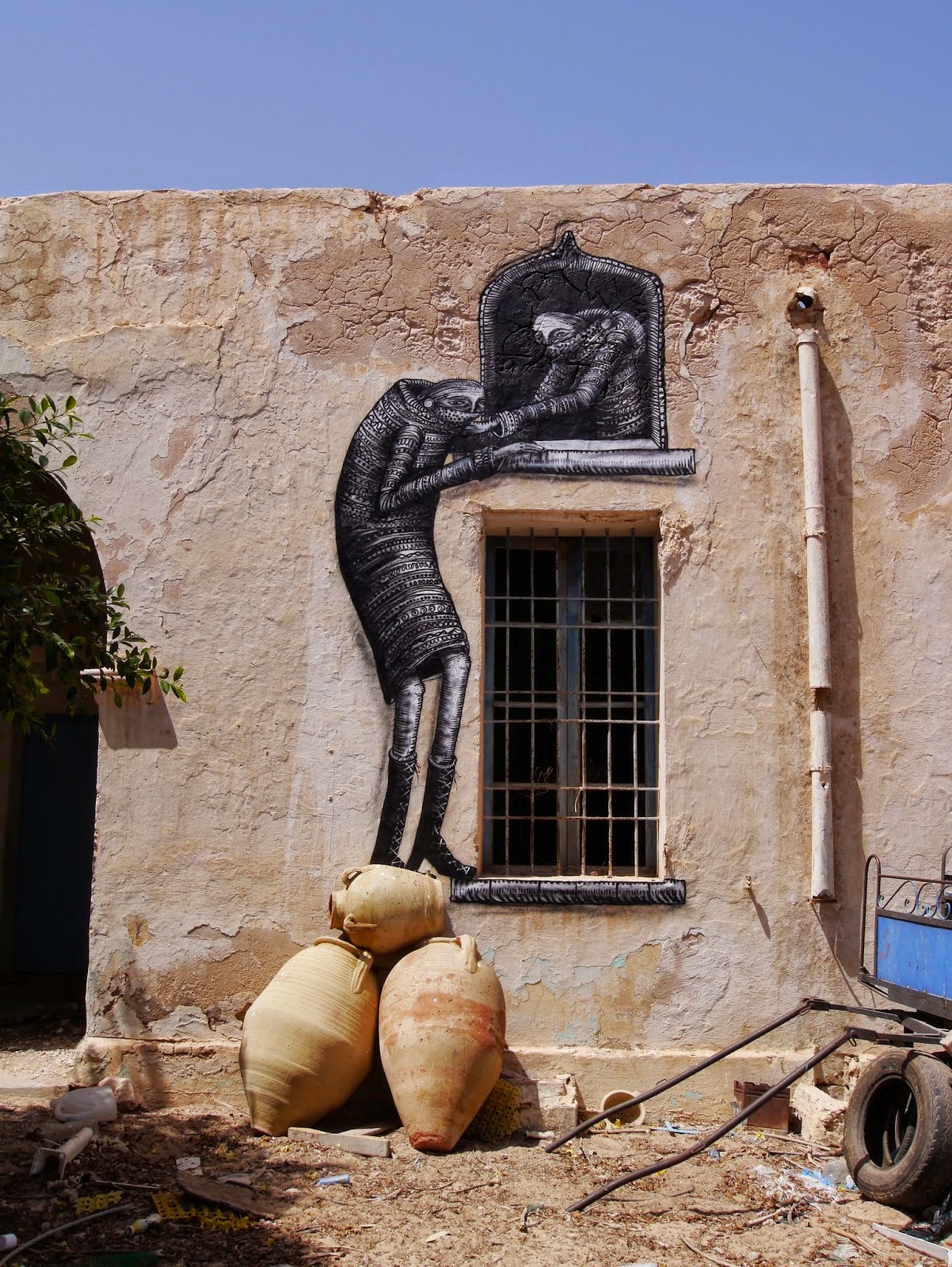 Phlegm is currently in North Africa where he painted in the searing heat in the village Erriadh, on the island of Djerba, Tunisa.