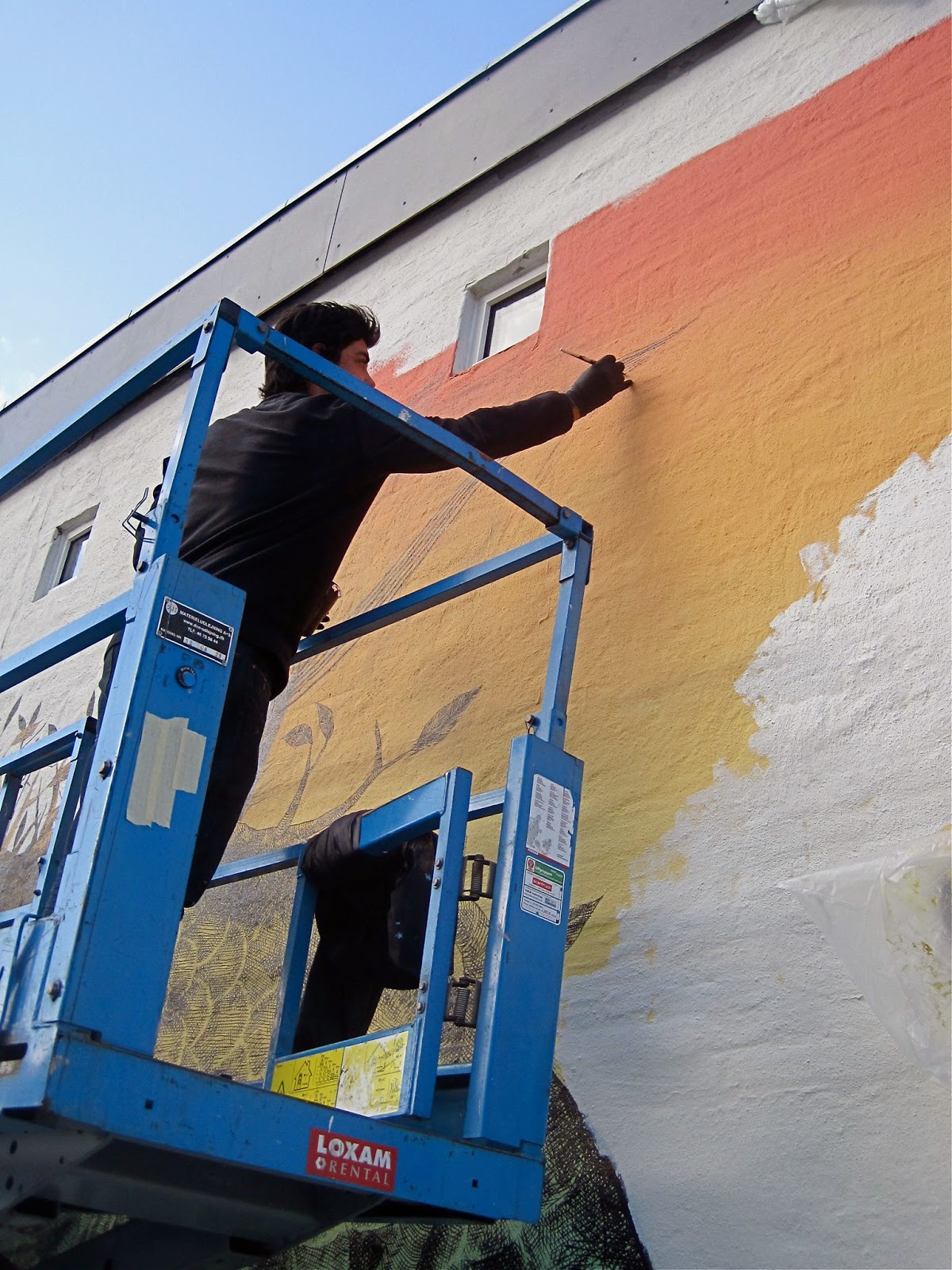 Battling through the rain, the Puerto Rican muralist fought the elements to complete yet another superb mural for the locals to enjoy. As usual with Alexis Diaz, this piece is featuring an insane amount of details that was painted using only a brush and ink.