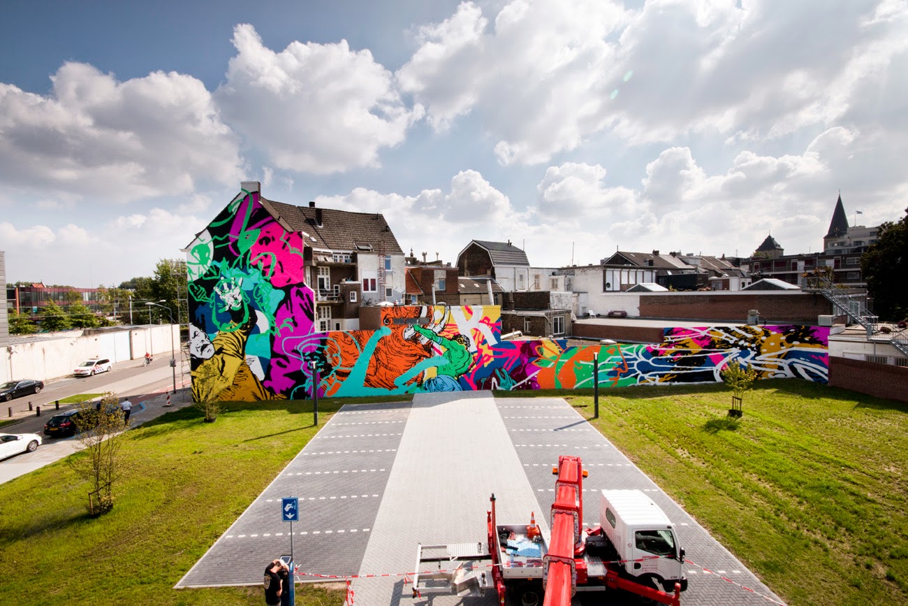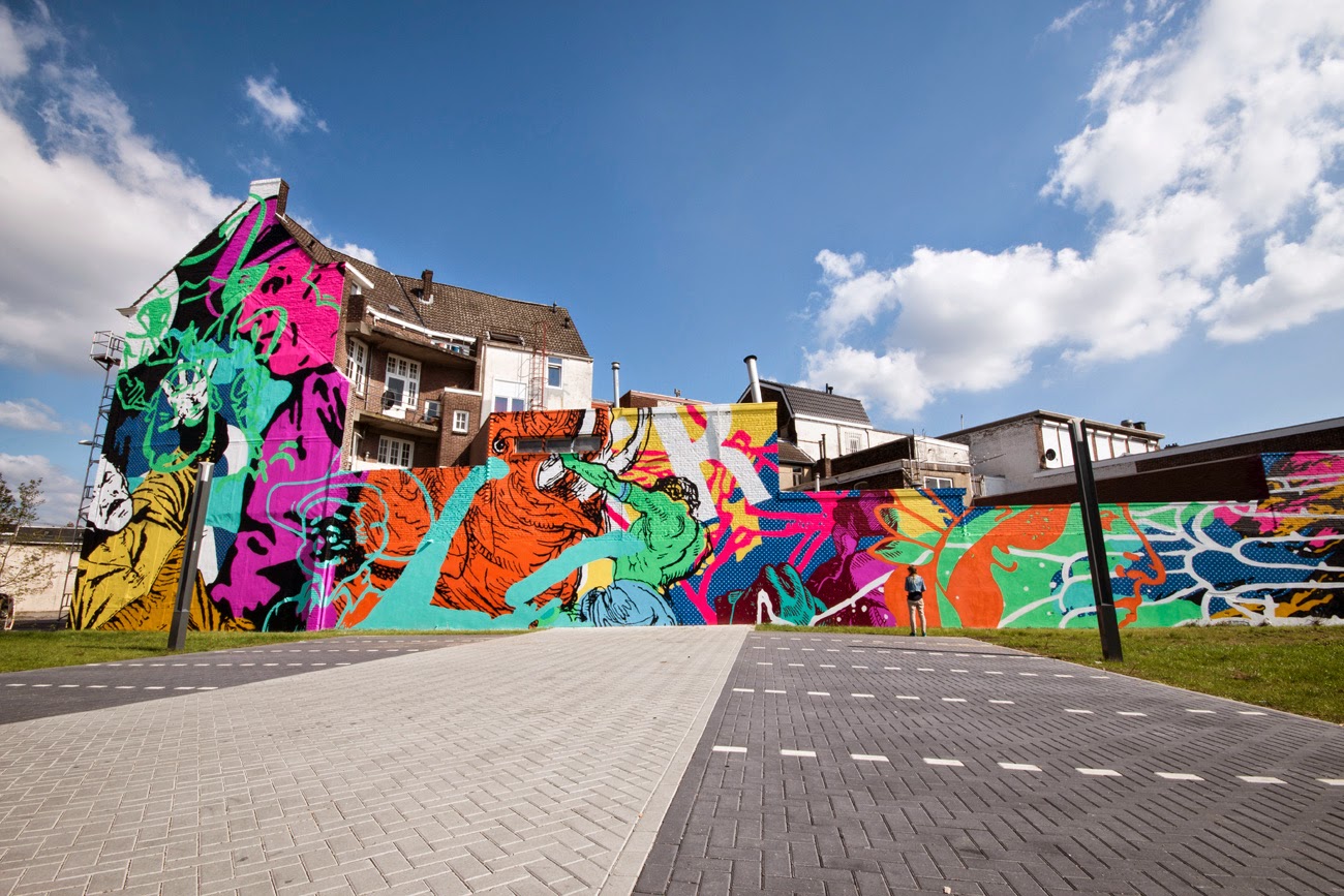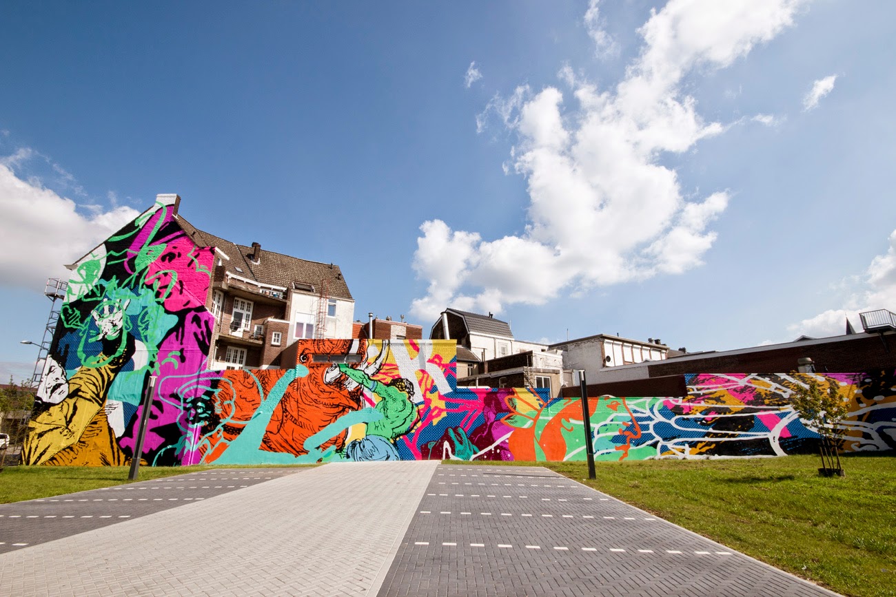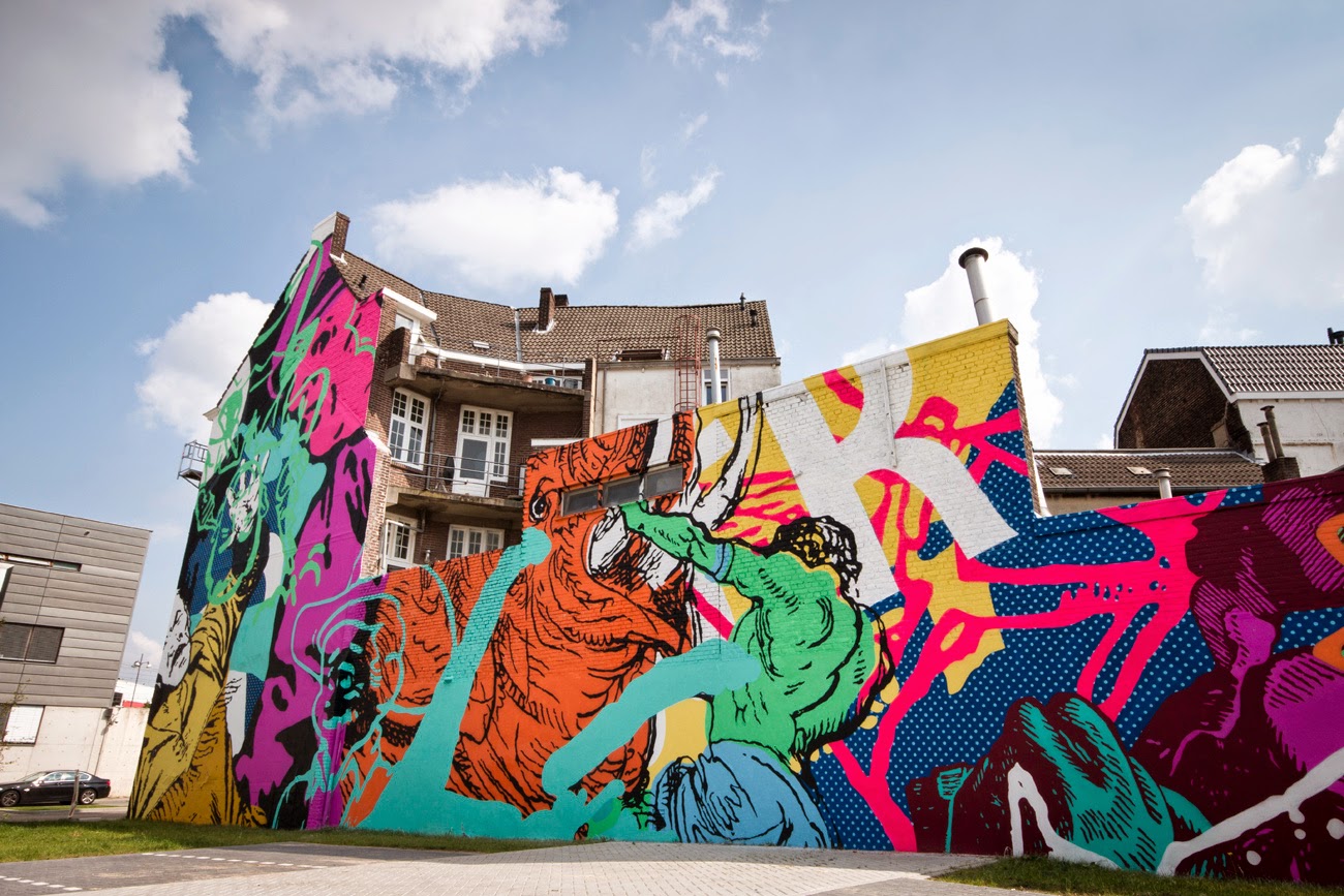 “the struggle that Heerlen has been going through for over twenty years battling the coal industries collapse and drug addiction. The wild colors and images visually translate that struggle and is meant to empower and inspire the community to keep fighting.” — Cyrcle