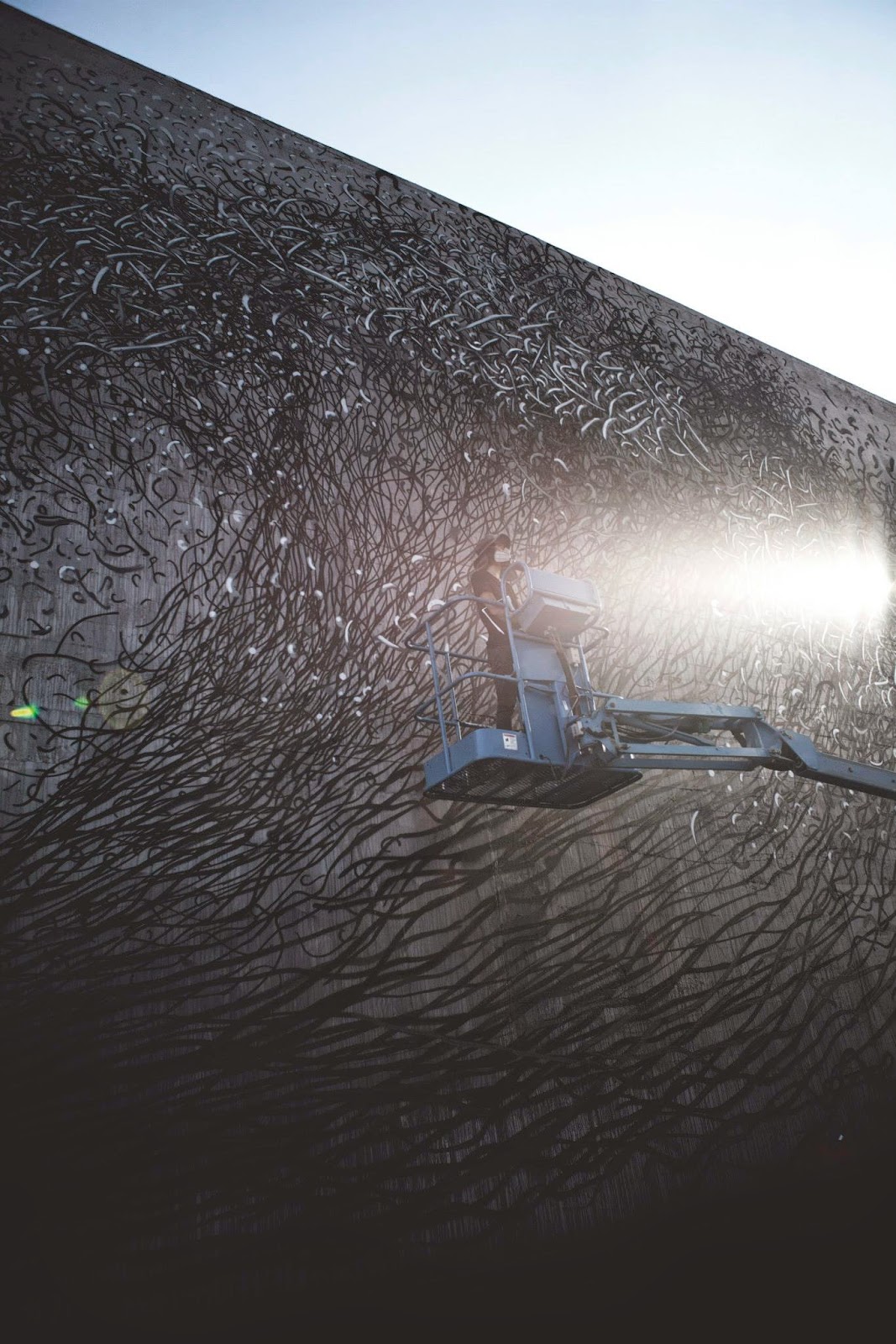 The Chinese street artist worked a few days on this massive piece which is entitled “Persistent Parabola”.