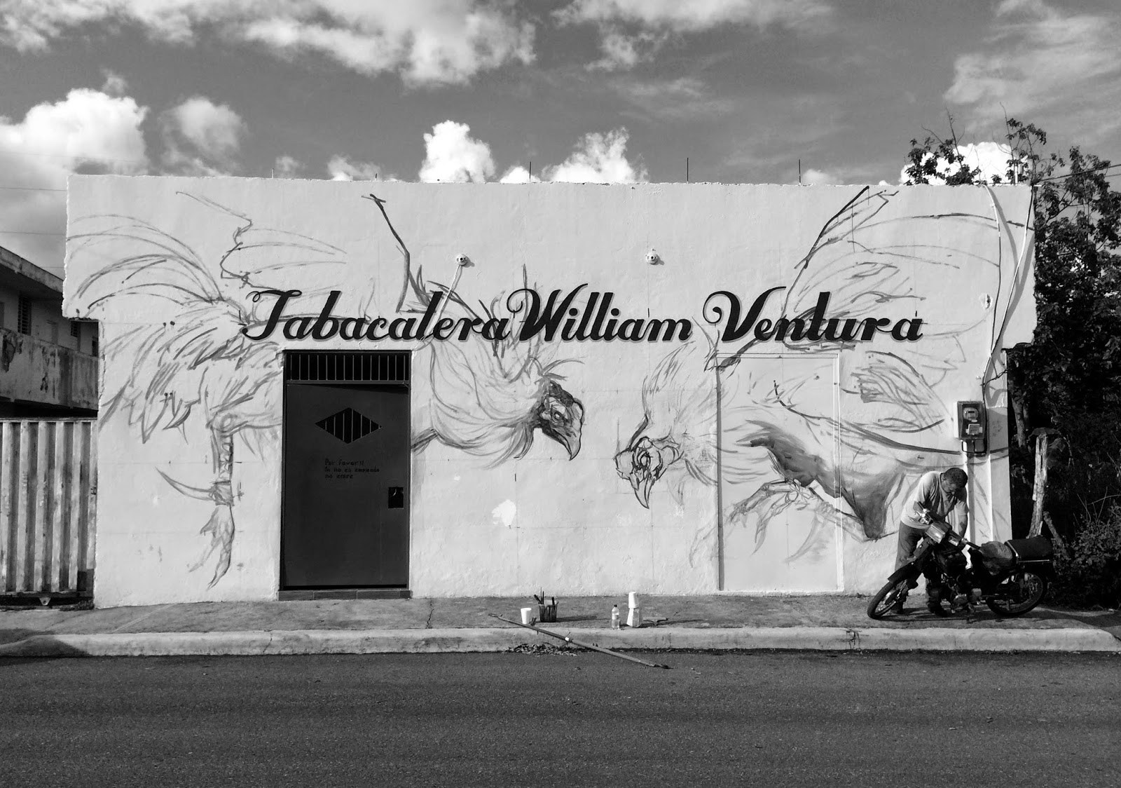 The talented artist painted this piece entitled “Gallos, Espuelas Y Memorias Viejas”(Rooster, Spurs And Old Memories). this mural is part of a series of work based on nostalgia. This piece is in no way meant to promote the act of cockfighting, but an attempt at reliving a childhood memory.